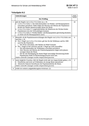 BI GK HT 3 Ministerium für Schule und Weiterbildung NRW Seite 7 von 8 Teilaufgabe III.3 Anforderungen Lösungsqualität Der Prüfling maximal erreichbare Punktzahl 1 fasst die wesentlichen … 6 2 beurteilt die Überlebenschancen … 10 3 erfüllt ein weiteres aufgabenbezogenes Kriterium: (2) …………………………………………………………….. …………………………………………………………….. Summe III.3 Teilaufgabe 16 Summe der III.1, III.2 und III.3 Teilaufgabe 54 EK ZK DK Darstellungsleistung Anforderungen Lösungsqualität Der Prüfling führt seine Gedanken … strukturiert seine Darstellung … verwendet eine differenzierte … gestaltet seine Arbeit … Summe Darstellungsleistung maximal erreichbare Punktzahl EK ZK DK 6 6 Summe insgesamt (inhaltliche und Darstellungsleistung) 60 Festlegung der Gesamtnote (Bitte nur bei der letzten bearbeiteten Aufgabe ausfüllen.) Lösungsqualität maximal erreichbare Punktzahl Übertrag der Punktsumme aus der ersten bearbeiteten Aufgabe 60 Übertrag der Punktsumme aus der zweiten bearbeiteten Aufgabe 60 Punktzahl der gesamten Prüfungsleistung 120 aus der Punktsumme resultierende Note Note ggf. unter Absenkung um ein bis zwei Notenpunkte gemäß § 13 Abs. 2 APO-GOSt Paraphe Nur für den Dienstgebrauch! EK ZK DK