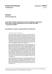 Deutscher Bundestag Drucksache 19/16813 19. Wahlperiode 28.01.2020 Antwort der Bundesregierung auf die Kleine Anfrage der Abgeordneten Sevim Dağdelen, Heike Hänsel, Zaklin Nastic, weiterer Abgeordneter und der Fraktion DIE LINKE. – Drucksache 19/16201 – Die US-Präsenz in Syrien, syrisches Erdöl und Völkerrecht Vorbemerkung der Fragesteller Der türkische Präsident Recep Tayyip Erdoğan hat am 9. Oktober 2019 den Start des lange geplanten Einmarsches in den Norden Syriens per Twitter be- kannt gegeben. Ziel der Offensive ist die kurdische YPG-Miliz, die auf syri- scher Seite der Grenze ein großes Gebiet kontrolliert und in der Recep Tayyip Erdoğan einen Ableger der verbotenen kurdischen Arbeiterpartei PKK und da- mit eine Terrororganisation sieht (dpa vom 9. Oktober 2019). Die „Operation Friedensquelle“, wie der Einmarsch seitens der Türkei genannt wird, solle die „terroristische Bedrohung“ an der Grenze beseitigen und im gemeinsamen Einsatz mit der sogenannten Syrischen Nationalarmee eine „Schutzzone“ auf syrischem Staatsgebiet schaffen (dpa vom 9. Oktober 2019). Zuvor hatte US-Präsident Donald Trump den Abzug von US-Truppen aus Syrien angekündigt. Doch stattdessen wurden zusätzliche Militärkräfte zu den Ölfeldern in der ostsyrischen Provinz Deir Essor entsandt, möglicherweise mit Panzern. Nach Darstellung der USA sollen die Truppen die Ölquellen vor isla- mistischen Terroristen oder „anderen destabilisierenden Akteuren“ schützen, wobei die US-Regierung nach Medienberichten auch die syrische Regierung zu den „destabilisierenden Akteuren“ zählt (www.tagesschau.de/ausland/syrie n-usa-oelfelder-105.html). Hintergrund des Umschwenkens war der Vorschlag des US-Präsidenten Donald Trump, Exxon Mobil oder einen anderen amerika- nischen Ölkonzern die Ölförderung in Syrien übernehmen zu lassen. „Was ich vielleicht vorhabe, ist, mit Exxon Mobil oder einem unserer großen Unterneh- men einen Deal abzuschließen, um das richtig anzugehen und den Reichtum zu verteilen“, sagte Trump während einer Pressekonferenz (Reuters vom 28. Oktober 2019). „Das Völkerrecht soll genau vor dieser Art von Ausbeutung schützen“, erklärt Laurie Blank, Professorin an der Emory Law School und Direktorin des Zen- trums für internationale und vergleichende Rechtswissenschaft. Auch Bruce Riedel, ehemaliger nationaler Sicherheitsberater übt Kritik: „Es ist nicht nur ein rechtlich zweifelhafter Schritt, es sendet auch eine Botschaft an die ganze Region und die Welt, dass Amerika das Öl stehlen will.“ (Reuters vom 28. Oktober 2019). Die Antwort wurde namens der Bundesregierung mit Schreiben des Auswärtigen Amts vom 24. Januar 2020 übermittelt. Die Drucksache enthält zusätzlich – in kleinerer Schrifttype – den Fragetext.