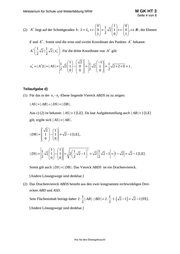 M GK HT 3 Ministerium für Schule und Weiterbildung NRW Seite 4 von 8 0 1 0 1 * (2) A liegt auf der Schnittgeraden h : x xS t 0 2 1 t 0 , t IR , der Ebenen 1 2 0 1 * * E und E . Somit sind die erste und zweite Koordinate des Punktes A bekannt: 1 1 * * 2 | x3 . Für die dritte Koordinate von A gilt: 2| A 2 2 * 2 1 1 1 1 1 * * x3 | A S | | AS | 2 1 0 2 1 220 1. 0 0 2 0 2 2 Teilaufgabe d) (1) Für das in der x1 - x2 -Ebene liegende Viereck ABDS ist zu zeigen: | AS | | AB | | DS | | DB | . Aus c) (2) ist bekannt: | AS | 1 [LE] . Da laut Aufgabenstellung auch | AB | 1 [LE] gilt, ergibt sich | AS | | AB | . 2 1 | DB | 1 1 2 1 [LE] , 0 0 2 1 1 1 1 1 | DS | 2 1 1 2 2 1 2 2 1 1 2 2 1 [LE] . 0 0 2 2 2 Somit gilt auch | DS | | DB | . Das Viereck ABDS ist ein Drachenviereck. [Andere Lösungswege sind denkbar.] (2) Das Drachenviereck ABDS besteht aus den zwei kongruenten rechtwinkligen Drei- ecken ABD und ASD. 1 1 Sein Flächeninhalt beträgt daher 2 | AB | | BD | 2 1 2 2 [Andere Lösungswege sind denkbar.] Nur für den Dienstgebrauch! 2 1 2 1 [FE] .