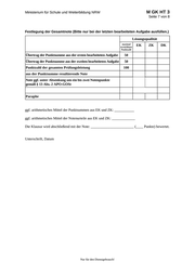M GK HT 3 Ministerium für Schule und Weiterbildung NRW Seite 7 von 8 Festlegung der Gesamtnote (Bitte nur bei der letzten bearbeiteten Aufgabe ausfüllen.) Lösungsqualität maximal erreichbare Punktzahl Übertrag der Punktsumme aus der ersten bearbeiteten Aufgabe 50 Übertrag der Punktsumme aus der zweiten bearbeiteten Aufgabe 50 Punktzahl der gesamten Prüfungsleistung 100 EK ZK DK aus der Punktsumme resultierende Note Note ggf. unter Absenkung um ein bis zwei Notenpunkte gemäß § 13 Abs. 2 APO-GOSt Paraphe ggf. arithmetisches Mittel der Punktsummen aus EK und ZK: ___________ ggf. arithmetisches Mittel der Notenurteile aus EK und ZK: _____________ Die Klausur wird abschließend mit der Note: ________________________ (____ Punkte) bewertet. Unterschrift, Datum Nur für den Dienstgebrauch!