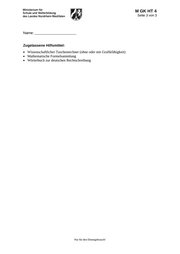 M GK HT 4 Seite 3 von 3 Name: _______________________ Zugelassene Hilfsmittel: Wissenschaftlicher Taschenrechner (ohne oder mit Grafikfähigkeit) Mathematische Formelsammlung Wörterbuch zur deutschen Rechtschreibung Nur für den Dienstgebrauch!