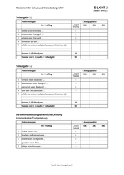 E LK HT 2 Ministerium für Schule und Weiterbildung NRW Seite 7 von 12 Teilaufgabe 3.1 Anforderungen Lösungsqualität Der Prüfling maximal erreichbare Punktzahl 1 nimmt kritisch wertend … 4 2 erörtert unter Rückgriff … 6 3 erörtert unter Rückgriff … 6 4 formuliert auf der … 4 5 erfüllt ein weiteres aufgabenbezogenes Kriterium: (4) …………………………………………………………….. …………………………………………………………….. Summe 3.1 Teilaufgabe 20 Summe der 1., 2. und 3.1 Teilaufgabe 60 EK ZK DK Teilaufgabe 3.2 Anforderungen Lösungsqualität Der Prüfling maximal erreichbare Punktzahl 1 verfasst einen situations- … 4 2 kommentiert unter Rückgriff … 6 3 entwickelt unter Rückgriff … 6 4 lässt den Geschäftsmann … 4 5 erfüllt ein weiteres aufgabenbezogenes Kriterium: (4) …………………………………………………………….. …………………………………………………………….. Summe 3.2 Teilaufgabe 20 Summe der 1., 2. und 3.2 Teilaufgabe 60 EK ZK DK Darstellungsleistung/sprachliche Leistung Kommunikative Textgestaltung Anforderungen Lösungsqualität Der Prüfling maximal erreichbare Punktzahl 1 richtet seinen Text … 6 2 beachtet die Konventionen … 6 3 erstellt einen sachgerecht … 8 4 gestaltet seinen Text … 6 5 belegt seine Aussagen … 4 Nur für den Dienstgebrauch! EK ZK DK