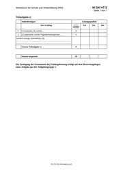 M GK HT 2 Ministerium für Schule und Weiterbildung NRW Seite 7 von 7 Teilaufgabe c) Anforderungen Lösungsqualität Der Prüfling maximal erreichbare Punktzahl 1 (1) bestimmt, für welche … 4 2 (2) untersucht, welche Tageshöchsttemperatur … 4 EK ZK sachlich richtige Alternativen: (8) ……………………………………………………………………. ……………………………………………………………………. Summe Teilaufgabe c) 8 Summe insgesamt 50 Die Festlegung der Gesamtnote der Prüfungsleistung erfolgt auf dem Bewertungsbogen einer Aufgabe aus der Aufgabengruppe 2. Nur für den Dienstgebrauch! DK