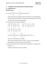 Ministerium für Schule und Weiterbildung NRW M GK HT 5 Seite 5 von 8 6.2 Teilleistungen – Kriterien Teilaufgabe a) maximal erreichbare Punktzahl Anforderungen Der Prüfling 1 (1) zeigt, dass das Dreieck ABC rechtwinklig und gleichschenklig ist. 7 2 (2) berechnet die Koordinaten der Bildpunkte A , B , C . 3 3 (2) untersucht das Bilddreieck A BC auf Rechtwinkligkeit und Gleichschenkligkeit. 7 4 (3) prüft, ob die Dreiecke ABC sowie A BC eine besondere Lage einnehmen. 3 Der gewählte Lösungsansatz und -weg muss nicht identisch mit dem der Modelllösung sein. Sachlich richtige Alternativen werden an dieser Stelle mit entsprechender Punktzahl bewertet. Teilaufgabe b) maximal erreichbare Punktzahl Anforderungen Der Prüfling 2 (1) begründet, dass die Ebene E durch den Ursprung verläuft. (2) zeigt, dass v1 und v2 zwei nicht kollineare Richtungsvektoren von E sind. 4 3 (3) bestimmt f v1 und f v 2 . 6 4 (4) weist nach, dass jeder Punkt der Ebene E durch die Abbildung f auf sich selbst abgebildet wird. 4 1 3 Der gewählte Lösungsansatz und -weg muss nicht identisch mit dem der Modelllösung sein. Sachlich richtige Alternativen werden an dieser Stelle mit entsprechender Punktzahl bewertet. Teilaufgabe c) maximal erreichbare Punktzahl Anforderungen Der Prüfling 1 (1) bestimmt das Bild g von g. 4 2 (1) untersucht die Lagebeziehung von g und g . 4 3 (2) zeigt, dass h und h parallel sind. 3 4 (2) zeigt, dass h h gilt. 2 Der gewählte Lösungsansatz und -weg muss nicht identisch mit dem der Modelllösung sein. Sachlich richtige Alternativen werden an dieser Stelle mit entsprechender Punktzahl bewertet. Nur für den Dienstgebrauch!