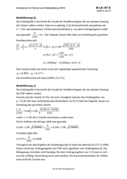 Ministerium für Schule und Weiterbildung NRW M LK HT 8 Seite 3 von 9 Modelllösung b) Die Zufallsgröße X beschreibt die Anzahl der Wahlberechtigten, die am nächsten Sonntag die Grünen wählen würden. Dann ist es günstig, X als binomialverteilt anzunehmen mit n = 1352 und unbekannter Trefferwahrscheinlichkeit p. Aus dem Umfrageergebnis erhält X man gerundet: 0,1 . Der folgende Ansatz führt dann zur Ermittlung des gesuchten 1352 Konfidenzintervalls: 1352 p (1 p) n p (1 p) X p z 0,1 p 1,96 1352 n n n p (1 p) 1,96 X 2 2 (p p ) (0,1 p) p z 1352 n n 2 n p (1 p) X 2 p z 1,00284 p 0,20284 p 0,01 0 n n Die Grenzen erhält man durch Lösen der zugehörigen quadratischen Gleichung: p1 0,0851 , p2 0,1171 . Das Konfidenzintervall lautet [0,0851; 0,1171]. Modelllösung c) Die Zufallsgröße X beschreibt die Anzahl der Wahlberechtigten, die am nächsten Sonntag die FDP wählen würden. Gesucht sind die Anteile X/1352, die noch verträglich sind mit dem Wahlergebnis von p = 0,146. Bei einer Sicherheitswahrscheinlichkeit von 95 % führt der folgende Ansatz zur Ermittlung des gesuchten Anteils: X 0,146 (1 0,146) 0,146 1,96 , 1352 1352 wobei z 1,96 der σ-Tabelle entnommen werden kann. Durch Auflösen des Betrags erhält man gerundet: X 0,146 1,96 0,000092 0,146 1,96 0,000092 . 1352 Gerundet ergibt dies: X 0,1272 0,1648 . 1352 Verträglich mit dem Ergebnis der Bundestagswahl ist somit das Intervall [0,1272; 0,1648]. Damit weicht das Umfrageergebnis der FDP nicht signifikant vom Wahlergebnis ab. Die Behauptung wird daher nicht bestätigt. Bei dem Umfrageergebnis von 13 % kann es sich um eine zufällige Abweichung nach unten handeln. Die Kurzentschlossenheit der Wähler muss nicht die Ursache sein. Nur für den Dienstgebrauch!
