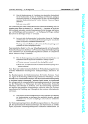 Deutscher Bundestag – 19. Wahlperiode –5– Drucksache 19/11666 Vorabfassung - wird durch die lektorierte Version ersetzt. 4. Wie geht das BAMF mit Menschen um, die aufgrund traumatischer Erleb- nisse eine Traumafolgestörung entwickelt haben und aus diesem Grund nicht ad hoc und ohne psychosoziale Unterstützung in der Lage sind, ihre Flucht- gründe und Fluchtgeschichte konsistent darzulegen? Wie wird sichergestellt, dass die Asylvorträge dieser Menschen nicht als widersprüchlich und nicht glaubhaft abgelehnt werden? Alle Anhörenden des Bundesamtes sind gemäß der Dialogical Communication Method (Dr. Kari Trøften Gamst, Dr. Åse Langballe) geschult. Teil der Schulung ist das Thema, welchen Einfluss Traumata auf Anhörungen haben und wie mit schwierigen Gesprächssituationen zum Beispiel bei traumatisierten Antragstel- lenden umzugehen ist. Sonderbeauftrage für Traumatisierte und Folteropfer ab- solvieren weitere Aufbauschulungen zur zielgruppengerechten Arbeit gemäß dem EASO (European Asylum Support Office – Europäisches Unterstützungs- büro für Asylfragen) Trainings Curriculum. 5. Welche Konsequenzen zieht die Bundesregierung aus der Kritik der BPtK und der BAfF, dass Asylsuchende durch den mit dem „Geordnete-Rückkehr- Gesetz“ geplanten Ausschluss von Psychotherapeutinnen und Psychothera- peuten kaum mehr Chancen hätten, eventuelle psychische Erkrankungen im Rahmen des Asylverfahrens einzubringen (siehe Vorbemerkung der Frage- steller)? Durch das sogenannte „Geordnete-Rückkehr-Gesetz“ findet keine Verschlechte- rung hinsichtlich der Bewertung oder des Nachweises psychischer Erkrankungen im Rahmen des Asylverfahrens statt. Es werden lediglich die Anforderungen an ärztliche Atteste konkretisiert. Im Übrigen wird auf die Vorbemerkung der Bun- desregierung verwiesen. 6. Welche Konsequenzen zieht die Bundesregierung aus der durch das BAMF, das IAB und das SOEP durchgeführten Studie, wonach 87 Prozent der Ge- flüchteten potentiell traumatisierende Ereignisse erlebt haben und zwischen 35 und 50 Prozent von ihnen Gefahr laufen, an einer posttraumatischen Be- lastungsstörung zu erkranken (siehe Vorbemerkung der Fragesteller)? 7. Teilt die Bundesregierung die Einschätzung, dass diese Menschen schnell Zugang zu psychotherapeutischer Unterstützung und Behandlung brauchen? 8. Wie schätzt die Bundesregierung die Versorgungssituation von Geflüchteten mit psychischen Erkrankungen in Deutschland ein (bitte ausführlich darstel- len, bitte auch auf evtl. Unterschiede zwischen den Bundesländern einge- hen)? Die Fragen 6, 7 und 8 werden aufgrund ihres Sachzusammenhanges gemeinsam beantwortet. Schutzsuchende Menschen können während ihrer Flucht vor Krieg, Folter oder Vertreibung traumatisierende Ereignisse erleben. Bei der Arbeit mit Geflüchteten ist es daher stets möglich, dass eine Vulnerabilität in Erscheinung tritt. Durch die Sensibilisierung und die Schulung aller am Asylverfahren beteiligten Mitarbei- tenden, insbesondere der Sonderbeauftragten gemäß EASO-Standard, und die enge Zusammenarbeit mit den Landesbehörden, wird dieser Umstand für alle An- tragstellenden berücksichtigt. Da nicht alle traumatisierenden Ereignisse zu einer psychischen Erkrankung oder einer posttraumatischen Belastungsstörung führen, muss die Frage, welche konkrete Behandlung erforderlich und angemessen ist, durch qualifiziertes Personal im Einzelfall entschieden werden.
