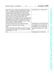 Drucksache 19/6709 – 12 – Deutscher Bundestag – 19. Wahlperiode Vorabfassung - wird durch die lektorierte Version ersetzt. ADM und Unternehmen Stellungnahme vom 3. April 2018 ADM Stellungnahmen vom 27. April, 11. Mai und 4. Juni 2018 BITKOM Stellungnahme vom 7. März 2018 Allied for startups Schreiben vom 31. Mai 2018 DVD Stellungnahme vom 31. Mai 2018, VDA Stellungnahme vom Mai 2018 ZAW Stellungnahme vom 25. Mai 2018 Vaunet Schreiben vom 24. Mai 2018 BDI Stellungnahme vom 30. Mai 2018, ZAW, AGOF, BDZV, BVDW Stellungnahme vom 16. Juli 2018 DDV, HDE, IVW, Markenverband OWM, VAUNET, VDZ, Bundesverband Deutsche Start-ups: BNE, BEE, BVES BWP Stellungnahme vom 18. September 2018 GDV Positionspapier vom 23. Juli 2018 IVW, ZAW Positionspapier vom Januar 2018 VZBV Schreiben vom 2. August 2017 und Schreiben vom 6. August 2018, Arbeitskreis Vorratsdatenspeicherung, Aktion Freiheit statt Positionspapier vom 27. Oktober 2018 Angs e. V., Berufsverband der Datenschutzbeauftragten Deutschlands (BvD) e. V., Bund demokratischer Wissenschaftle- rinnen und Wissenschaftler e. V., Deutsche Vereinigung für Da- tenschutz e. V., DFJV Deutscher Fachjournalisten-Verband AG, Die Datenschützer Rhein Main, Digitalcourage e. V., Digitale Gesellschaft e. V., Fitug e. V., Forum InformatikerInnen für Frie- den und gesellschaftliche Verantwortung (FIfF) e. V., Internet Society, German Chapter e. V. (ISOC.DE e. V.), Komitee für Grundrechte und Demokratie Netzwerk Datenschutzexpertise, VZBV, Vereinigung Demokratischer Juristinnen und Juris- ten e. V. ZAW, AGOF, BDZV, BVDW, Gemeinsame Stellungnahme vom DDV, HDE, IVW, Markenverband 27. November 2018 OWM, VAUNET, VDZ European Magazine Media Association, European Newspaper Positionspapier vom 3. Dezember 2018 Publishers’ Association, European Publishers Council, News Media Europe