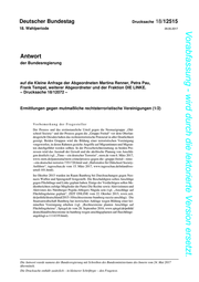 Drucksache 18/12515 –4– Deutscher Bundestag – 18. Wahlperiode Vorabfassung - wird durch die lektorierte Version ersetzt. 12. Flossen Erkenntnisse von anderen Behörden des Bundes in die Ermittlungen ein, und wenn ja, von welchen? 13. Liegen nach Kenntnis der Bundesregierung gegen einen oder mehrere An- geklagte staatsschutzrelevante Erkenntnisse bzw. Vorstrafen oder offene Haftbefehle aus dem Bereich PMK-rechts vor (bitte nach Delikten und Jah- ren auflisten)? 14. Hat die Bundesregierung Kenntnis darüber, in welchen Organisationen und Zusammenschlüssen der extremen Rechten die Angeklagten aktiv sind (bitte unter Angabe des Organisationsnamens beantworten)? 15. Wie viele der Angeklagten sind nach Kenntnis der Bundesregierung Mitglie- der der Partei „Der III. Weg“? 16. Wie viele Straftaten werden der Bamberger Gruppe nach Kenntnis der Bun- desregierung nach derzeitigem Stand zugerechnet (bitte nach Datum, Ort und Tatvorwurf bzw. Straftatbestand auflisten)? 17. Welche anderen Räumlichkeiten wurden nach Kenntnis der Bundesregie- rung jenseits von Wohnräumen im Zusammenhang mit den Ermittlungen ge- gen die Bamberger Gruppe durchsucht (bitte die Räumlichkeiten genau spe- zifizieren)? 18. Gab es nach Kenntnis der Bundesregierung Hinweise auf bzw. Beschlagnah- mung von Waffen und Sprengmitteln sowie Anschlagsvorbereitungen bei den Beschuldigten der Bamberger Gruppe (bitte unter Angabe ggfs. der Waf- fen/Sprengmittel/Anschlagsziel/Bundesland des Auffindeorts beantworten)? 19. Hat die Bundesregierung Kenntnis über die Herkunft eventuell beschlag- nahmter Waffen oder Sprengmittel, die im Rahmen der Exekutivmaßnahmen gegen die Bamberger Gruppe aufgefunden wurden? Die Fragen 10 bis 19 werden gemeinsam beantwortet. Auf die Antwort der Bundesregierung zu den Fragen 23 bis 34 der Kleinen An- frage der Fraktion DIE LINKE. zu „Ermittlungen gegen mutmaßliche rechtster- roristische Vereinigungen (Teil 1)“ auf Bundestagsdrucksache 18/9208 vom 18. Juli 2016 wird verwiesen. 20. Gibt es ein Ergebnis des durch den Generalbundesanwalt am 14. August 2015 angelegten Beobachtungsvorgangs bezüglich einer möglichen Verfah- rensübernahme im Zusammenhang mit der Bamberger Gruppe? Der GBA hat von einer Übernahme des Verfahrens abgesehen, weil sich zu- reichende tatsächliche Anhaltspunkte für von der Gruppierung geplante oder vor- bereitete Straftaten im Sinne des § 129a Absatz 1 und Absatz 2 StGB und damit für eine Zuständigkeit des GBA nach § 120 Absatz 1 Nummer 6 des Gerichtsver- fassungsgesetzes nicht ergeben haben. 21. Handelt es sich nach Ansicht der Bundesregierung bei der Bamberger Gruppe um eine mutmaßliche rechtsterroristische Struktur, und wie begrün- det die Bundesregierung ihre Auffassung? 22. Welche Kenntnisse hat die Bundesregierung zu Kontakten, die die Ange- klagten des Prozesses gegen die Bamberger Gruppe zu Personen und Orga- nisationen der extremen Rechten im Ausland haben (bitte unter Angabe des Landes und der Organisation beantworten)?