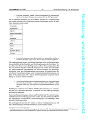 Drucksache 19/1797 –8– Deutscher Bundestag – 19. Wahlperiode Vorabfassung - wird durch die lektorierte Version ersetzt. 10. Welche Kriegswaffen von Antragstellern mit Sitz in Nordrhein-Westfalen wurden in den Jahren 2014 bis 2017 an welche Drittstaaten (bitte nach Emp- fängerland, Kriegswaffe und Jahr aufschlüsseln) ausgeführt? Die Angaben beziehen sich auf Ausfuhrgenehmigungen. Für die nachfolgenden Drittländer sind Genehmigungen nach dem AWG für die jeweils aufgeführten Kriegswaffen für Unternehmen mit Sitz in Nordrhein-Westfalen erteilt worden: 2014 zur Ausfuhr in Drittländer genehmigte Kriegswaffen nach Kriegswaffenlistenposition Afghanistan 50 – Munition für die Waffen der Nummer 29 [VN-Mission] Brunei Darus- salam 37 – Tragbare Panzerabwehrwaffen 08 – Ungelenkte Flugkörper (Raketen) 57 – Zünder für die Waffen der Nummern 7-9, 40, 43, 44, 46, 47, 49, 51 bis 53 und 59, Israel ausgenommen Treibladungsanzünder Libanon 50 – Munition für die Waffen der Nummer 29 [VN-Mission] Mali 50 – Munition für die Waffen der Nummer 29 [VN-Mission] Oman 37 – Tragbare Panzerabwehrwaffen Peru 52 – Munition für die Waffen der Nummern 37 und 39 Singapur 37 – Tragbare Panzerabwehrwaffen 2015 zur Ausfuhr in Drittländer genehmigte Kriegswaffen nach Kriegswaffenlistenposition Brunei Darussalam 37 – Tragbare Panzerabwehrwaffen Jordanien 37 – Tragbare Panzerabwehrwaffen Republik Korea 52 – Munition für die Waffen der Nummern 37 und 39 2016 zur Ausfuhr in Drittländer genehmigte Kriegswaffen nach Kriegswaffenlistenposition 07 – Lenkflugkörper 14 – Kampfhubschrauber 17 – Kriegsschiffe einschließlich solcher, die für die Ausbildung verwendet werden 40 – Torpedos 44 – Bomben aller Art, einschließlich der Wasserbomben 49 – Munition für die Waffen der Nummern 31 und 32 50 – Munition für die Waffen der Nummer 29 54 – Geschosse für die Waffen der Nummern 49 und 52 55 – Treibladungen für die Waffen der Nummern 49 und 52 Algerien 58 – Zielsuchköpfe für die Waffen der KWL 7, 9, 40, 44, 49, 59 und 60 08 – Ungelenkte Flugkörper (Raketen) 57 – Zünder für die Waffen der Nummern 7-9, 40, 43, 44, 46, 47, 49, 51 bis 53 und 59, Israel ausgenommen Treibladungsanzünder Republik Korea 52 – Munition für die Waffen der Nummern 37 und 39