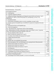 Deutscher Bundestag – 19. Wahlperiode –7– Drucksache 19/1797 Vorabfassung - wird durch die lektorierte Version ersetzt. Einzelgenehmigungen – Kriegswaffen Kriegswaffenlistennummer Menge 07 – Lenkflugkörper 80 08 – Ungelenkte Flugkörper (Raketen) 7.922 10 – Abfeuereinrichtungen (Startanlagen und Startgeräte) für die Waffen der Nummern 7 und 9 einschließlich der tragbaren Abfeuereinrichtungen für Lenkflugkörper zur Panzer- und Fliegerabwehr 2 14 – Kampfhubschrauber 6 17 – Kriegsschiffe einschließlich solcher, die für die Ausbildung verwendet werden 2 25 – Sonstige gepanzerte Kampffahrzeuge einschließlich der gepanzerten kampfunterstützenden Fahrzeuge 1 27 – Fahrgestelle für Panzer und Kampffahrzeuge 1 28 – Türme für Kampfpanzer 1 29A – Maschinengewehre, ausgenommen solche mit Wasserkühlung 1 29D – Halbautomatische Gewehre, ausgenommen solche, die als Modell vor dem 2. September 1945 bei einer militärischen Streitkraft eingeführt worden sind 48.000 31 – Kanonen, Haubitzen, Mörser jeder Art 3 34 – Rohre für Waffen der Nummern 29, 31 und 32 6 35 – Verschlüsse für die Waffen der Nummern 29, 31 und 32 4 37 – Tragbare Panzerabwehrwaffen 7.587 40 – Torpedos 26 44 – Bomben aller Art einschließlich Wasserbomben 300 47 – Pioniersprengkörper, Hohl- und Haftladungen sowie sprengtechnische Minenräummittel 678 49 – Munition für die Waffen der Nummern 31 und 32 11.290 50 – Munition für die Waffen der Nummer 29 340.300 52 – Munition für die Waffen der Nummern 37 und 39 8.334 53 – Gewehrgranaten 140 54 – Geschosse für die Waffen der Nummern 49 und 52 1.060 55 – Treibladungen für die Waffen der Nummern 49 und 52 964 57 – Zünder für die Waffen der Nummern 7-9, 40, 43, 44, 46, 47, 49, 51 bis 53 und 59, ausgenommen Treibladungsanzünder 12.594 58 – Zielsuchköpfe für die Waffen der KWL 7, 9, 40, 44, 49, 59 und 60 2