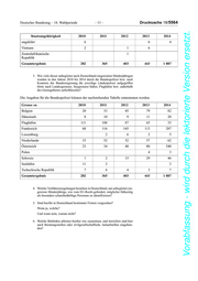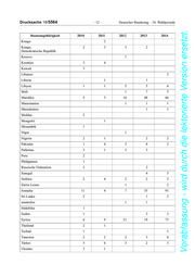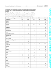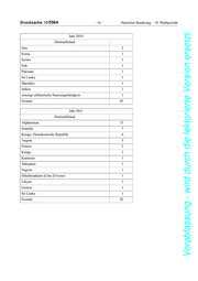 K or re kt ur Drucksache 18/5564 – 16 – Deutscher Bundestag – 18. Wahlperiode Vorabfassung - wird durch die lektorierte Version ersetzt. Jahr 2010 Herkunftsland Iran 2 Kenia 1 Syrien 1 Irak 1 Pakistan 1 Sri Lanka 1 Marokko 1 Indien 1 sonstige afrikanische Staatsangehörigkeit 1 Gesamt 65 Jahr 2011 Herkunftsland Afghanistan 13 Somalia 7 Kongo, Demokratische Republik 6 K:\Publishing\Produktion\BT\Produktion\07_Fahne\1805564\1805564.fm, 31. Juli 2015, Seite 16 Angola 5 Eritrea 2 Kongo 2 Kamerun 1 Äthiopien 1 Nigeria 1 Elfenbeinküste (Côte d’Ivoire) 1 Libyen 1 Guinea 1 Sri Lanka 1 Gesamt 42 ur kt re or K