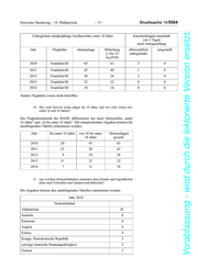 K or re kt ur Deutscher Bundestag – 18. Wahlperiode – 15 – Drucksache 18/5564 Vorabfassung - wird durch die lektorierte Version ersetzt. Unbegleitete minderjährige Asylbewerber unter 18 Jahre Entscheidungen innerhalb von 2 Tagen nach Antragstellung Jahr Flughafen Aktenanlage Mitteilung offensichtlich eingestellt § 18a VI unbegründet AsylVfG 2010 Frankfurt/M 65 61 3 0 2011 Frankfurt/M 42 40 1 0 2012 Frankfurt/M 28 26 2 0 2013 Frankfurt/M 32 32 0 0 2014 Frankfurt/M 18 16 0 0 Andere Flughäfen waren nicht betroffen. 10. Wie viele hiervon waren jünger als 14 Jahre, und wie viele waren zwi- schen 16 und 18 Jahren? Die Flughafenstatistik des BAMF differenziert nur nach Altersstufen „unter 16 Jahre“ und „16 bis unter 18 Jahre“. Die entsprechenden Angaben können der nachfolgenden Tabelle entnommen werden: Jahr bis unter 16 Jahre von 16 bis unter Aktenanlagen K:\Publishing\Produktion\BT\Produktion\07_Fahne\1805564\1805564.fm, 31. Juli 2015, Seite 15 18 Jahre gesamt 2010 20 45 65 2011 22 20 42 2012 9 19 28 2013 11 21 32 2014 7 11 18 11. Aus welchen Herkunftsländern stammten diese Kinder und Jugendlichen (bitte nach Fallzahlen und Ländern aufschlüsseln)? Die Angaben können den nachfolgenden Tabellen entnommen werden. Jahr 2010 Herkunftsland Afghanistan 28 Somalia 6 Kamerun 6 Angola 4 Eritrea 4 Kongo, Demokratische Republik 3 sonstige asiatische Staatsangehörigkeit 2 Guinea 2 ur kt re or K