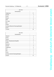 K or re kt ur Deutscher Bundestag – 18. Wahlperiode – 17 – Drucksache 18/5564 Vorabfassung - wird durch die lektorierte Version ersetzt. Jahr 2012 Herkunftsland Afghanistan 11 Somalia 3 Eritrea 3 Nigeria 2 Haiti 2 Sri Lanka 2 Iran 2 Guinea 1 sonstige afrikanische Staatsangehörigkeit 1 Syrien 1 Gesamt 28 Jahr 2013 Herkunftsland Algerien 3 K:\Publishing\Produktion\BT\Produktion\07_Fahne\1805564\1805564.fm, 31. Juli 2015, Seite 17 Eritrea 3 Nigeria 2 Kongo, Demokratische Republik 2 Guinea 1 Kamerun 1 Somalia 4 Afghanistan 6 Irak 3 Iran 1 Syrien 5 sonstige asiatische Staatsangehörigkeit 1 Gesamt 32 ur kt re or K