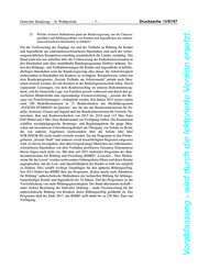 Drucksache 18/6147 –4– Deutscher Bundestag – 18. Wahlperiode Vorabfassung - wird durch die lektorierte Version ersetzt. 6. Welche Vorgaben des Bundesverfassungsgerichtes sind bei der Bemessung der Schulbedarfe nach dem Bildungs- und Teilhabepaket nach Ansicht der Bundesregierung zu berücksichtigen? Es wird auf die Vorbemerkung der Bundesregierung verwiesen. 7. Welche Schlussfolgerungen und Konsequenzen zieht die Bundesregierung daraus, dass, wie die Studie des Sozialwissenschaftlichen Instituts der EKD zeigt, die tatsächlichen Kosten des Schulbedarfs in Niedersachsen in jedem Schuljahr mit rund 200 Euro bis 400 Euro oberhalb der im Bildungs- und Teilhabepaket vorgesehenen 100 Euro pro Schuljahr liegen? 8. Welche Schlussfolgerungen und Konsequenzen zieht die Bundesregierung aus dem Ergebnis der Studie, dass die tatsächlichen Schulbedarfe bei der Einschulung und beim Schulwechsel besonders hoch sind und die Leistungs- ansprüche um mehr als 200 Prozent übersteigen? Die Fragen 7 und 8 werden gemeinsam beantwortet. Es wird auf die Vorbemerkung der Bundesregierung verwiesen. 9. Welche sozialen Folgen erwachsen aus Sicht der Bundesregierung aus dieser Unterdeckung der tatsächlichen Kosten für die Leistungsbeziehenden nach dem SGB II, dem Wohngeldgesetz und dem Bundeskindergeldgesetz? 10. Welche Schlussfolgerungen und Konsequenzen zieht die Bundesregierung aus den sozialen Folgen für die Leistungsbeziehenden nach dem SGB II, dem Wohngeldgesetz und dem Bundeskindergeldgesetz aufgrund der in der Stu- die beschriebenen Unterdeckung? 11. Welche Schlussfolgerungen und Konsequenzen zieht die Bundesregierung aus den in der Studie des Sozialwissenschaftlichen Instituts der EKD gezeig- ten sehr großen Unterschieden der tatsächlich anfallenden Kosten für den Schulbedarf in den verschiedenen Schuljahren bezüglich der Gefahr indivi- dueller Bedarfsunterdeckungen? Die Fragen 9 bis 11 werden gemeinsam beantwortet. Eine Unterdeckung besteht aus Sicht der Bundesregierung nicht; es wird auf die Vorbemerkung der Bundesregierung verwiesen. 12. Welche Schlussfolgerungen und Konsequenzen zieht die Bundesregierung aus der in der Studie des Sozialwissenschaftlichen Instituts der EKD emp- fohlenen und auch bei der Befragung von Leistungsberechtigten für den im Juli 2015 erschienenen Zweiten Zwischenbericht „Evaluation der bundes- weiten Inanspruchnahme und Umsetzung der Leistungen für Bildung und Teilhabe“ angeregten frühzeitigeren Erstattung der Schulbedarfe, um zu ver- hindern, dass die Leistungsberechtigten in Vorleistung gehen müssen oder nicht von Sonderangeboten profitieren können, die von Geschäften in der Regel vor den Sommerferien angeboten werden? Die Umsetzung der Leistungen für Bildung und Teilhabe liegt in kommunaler Verantwortung und unterfällt der Aufsicht der Länder. Gesetzliche Änderungen in diesem Bereich erforderten zudem eine Zustimmung der Länder im Bundesrat. Die Bundesregierung befindet sich im Rahmen des Steuerungskreises zum For- schungsvorhaben zur Evaluation der Leistungen zu Bildung und Teilhabe im Austausch mit den Ländern und wird alle von den Ländern vorgebrachten Vor- schläge konstruktiv prüfen.
