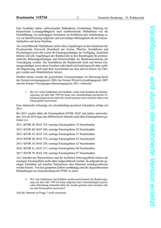 Deutscher Bundestag – 19. Wahlperiode –3– Drucksache 19/5734 Vorabfassung - wird durch die lektorierte Version ersetzt. 3. Auf welche Ursachen sind nach Ansicht der Bundesregierung die im Wehr- bericht genannten Chronifizierungen hauptsächlich zurückzuführen? Was hat die Bundesregierung bisher unternommen, um dem entgegenzu- treten bzw. vorzubeugen? Welche zukünftigen Maßnahmen plant die Bundesregierung diesbezüglich? Chronifizierungen psychischer Erkrankungen sind auf vielfältige Ursachen zu- rückzuführen. So begibt sich aufgrund ausgeprägter Stigmatisierungsängste ein relevanter Anteil der Erkrankten nicht zeitgerecht in eine adäquate psychothera- peutische Behandlung. Durch die in den Vorbemerkungen erläuterten Maßnah- men hat die Bundeswehr auf diese Stigmatisierungsängste reagiert. Darüber hin- aus hat durch die mehrjährige Einsatz-Historie der Bundeswehr eine zunehmende Anzahl Soldatinnen und Soldaten bereits mehrfach oder vielfach an Einsätzen teilgenommen und in diesem Rahmen ggf. eine entsprechende Anzahl belastender oder traumatisierender Ereignisse erlebt. Mit dem Konzept „Erhalt und Steigerung der Psychischen Fitness von Soldaten und Soldatinnen“ wurden Maßnahmen definiert, die vor, während und nach dem Einsatz so zur Anwendung kommen sollen, dass die psychische Fitness der Sol- datinnen und Soldaten derart gestärkt wird, dass sie den besonderen Belastungen des Einsatzes, aber auch des täglichen Dienstbetriebs standhalten soll. Im Übrigen wird auf die Vorbemerkung der Bundesregierung verwiesen. 4. Wie definiert die Bundesregierung den auf der Internetseite Bundeswehr.de genannten Begriff „Behandlungskontakte“ (vgl. https://bit.ly/2yvk5n5)? Behandlungskontakte sind definiert als die gesamte Anzahl fachärztlich-thera- peutischer Konsultationen der Soldatinnen und Soldaten in einem definierten Be- obachtungszeitraum (Erstvorstellung und Wiedervorstellungen). Dies bedeutet, dass auf einen Patienten mehrere Behandlungskontakte entfallen können. 5. Wie viele Behandlungskontakte aufgrund von PTBS verzeichnet die Bun- deswehr seit dem Jahr 1999 bis heute (bitte die Anzahl der Behandlungskon- takte getrennt nach einzelnen Jahren sowie Einsatzgebiet ausweisen)? Die Behandlungskontakte betragen: 1996 - 2003: KFOR 12, ISAF 30, sonstige Einsatzgebiete 0 2004: KFOR 12, ISAF 84, sonstige Einsatzgebiete 0 2005: KFOR 38, ISAF 75, sonstige Einsatzgebiete 0 2006: KFOR 24, ISAF 55, sonstige Einsatzgebiete 0 2007: KFOR 12, ISAF 130, sonstige Einsatzgebiete 0 2008: KFOR 19, ISAF 226, sonstige Einsatzgebiete 0 2009: KFOR 42, ISAF 418, sonstige Einsatzgebiete 0 2010: KFOR 43, ISAF 557, sonstige Einsatzgebiete 129 2011: KFOR 51, ISAF 759, sonstige Einsatzgebiete 112 2012: KFOR 88, ISAF 948, sonstige Einsatzgebiete 107 2013: KFOR 132, ISAF 1114, sonstige Einsatzgebiete 150 2014: KFOR 173, ISAF 1311, sonstige Einsatzgebiete 213