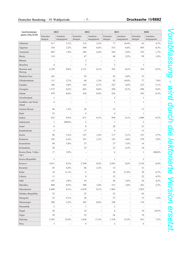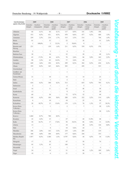 Drucksache 19/6682 –8– Deutscher Bundestag – 19. Wahlperiode Vorabfassung - wird durch die lektorierte Version ersetzt. Anerkennungs- 2013 2012 2011 2010 quote (16a,3I,4I) Entschei- Anerken- Entschei- Anerken- Entschei- Anerken- Entschei- Anerken- dungen nungsquote dungen nungsquote dungen nungsquote dungen nungsquote Rumänien 37 - 15 - 9 - 13 - Portugal - - 1 - - - - - Senegal 102 1,0% 34 5,9% 49 - 49 2,0% Serbien 12.229 0,1% 13.807 0,0% 6.844 0,0% 5.245 0,1% sonst. europ. Staats- 56 - 55 - 13 - 45 - angeh. Spanien 3 - 1 - 1 - 2 - Togo 62 9,7% 71 5,6% 90 16,7% 109 12,8% Tschad 32 - 22 - 4 - 5 80,0% Tunesien 314 1,3% 316 - 324 - 193 2,6% Ukraine 57 - 44 - 71 8,5% 61 3,3% Ungarn 1 - 5 - 2 - 6 - Vietnam 673 0,1% 628 1,0% 860 0,6% 1.246 0,2% Weißrussland 116 2,6% 78 3,8% 67 3,0% 71 1,4%