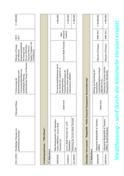Universität Paderborn, Dow Chemical Generierung höherer, qualitativ hochwertiger Ernteerträge durch Qualifizierung von Kaffee anbauender Kleinbauern in Tansania. Maßnahmen beinhalten die Einführung von DEG und die unter Kooperationsformen, Trainingsmaßnahmen Projektpartner genannten 13.10.2014 - Songea/Ruvuma für #Good Agricultural Practices# (GAP) OLAM Europe Ltd. Unternehmen 31.12.2016 € 189.100 Sicherstellung einer funktionierenden Energieübertragung und -verteilung (über Transmissions- bzw. Distribution-Netze) und Stabilisierung der Versorgungsqualität DEG und die unter für die Energieverbraucher durch gezielte Maschinenfabrik Reinhausen Projektpartner genannten 14.07.2014 - Tansania Trainings- und Schulungsmaßnahmen GmbH Unternehmen 15.10.2016 € 200.000 Bayer HealthCare AG Unterstützung von Trainingsinstitutionen Boehringer Ingelheim Pharma GIZ und die unter für verbesserte pharmazeutische GmbH & Co. KG Projektpartner genannten 01.04.2014 - Tansania Dienstleistungen in Tansania Merck KGaA Unternehmen 31.12.2016 € 193.500 Überregional (Burundi, Kenia, Ruanda, GIZ und die unter Tansania, Allianz Global Investors Europe Projektpartner genannten 09.12.2013 - Uganda) Zentralbankberatung in Ostafrika GmbH Unternehmen 31.12.2015 € 196.975 UST Umwelt Systemtechnik GmbH GeoConsult Ingenieurgesellschaft für Verbesserung und nachhaltige Entwicklung Umweltschutz und Geotechnik GIZ und die unter der Wasserversorgung in den Dorfregionen mbH Projektpartner genannten 01.10.2013 - Sansibar Michamvi und Kijitu Upele auf Sansibar LITHEC GmbH Unternehmen 31.10.2015 € 198.727 BASF SE Bayer CropScience AG Überregional DSM Nutritional Products Ltd. (Bangladesch, Erschwingliche, nährstoffangereicherte Aglukon Spezialdünger GmbH GIZ und die unter Ghana, kenia, Lebensmittel für Frauen // „Affordable & Co. KG Projektpartner genannten 01.07.2013 - Tansania) Nutritious Foods for Women“ (ANF4W) Ajinomoto Co., Inc. Unternehmen 31.05.2017 € 3.373.344 Vorabfassung - wird durch die lektorierte Version ersetzt.