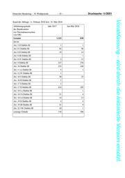 Deutscher Bundestag – 19. Wahlperiode – 25 – Drucksache 19/3051 Vorabfassung - wird durch die lektorierte Version ersetzt. Stand der Abfrage: 11. Februar 2018 bzw. 31. Mai 2018 Ablehnungsgründe Jahr 2017 Jan-Mai 2018 des Bundesamtes (zu Übernahmeersuchen von GR) Gesamt 1.215 838 davon Art. 3 II Dublin III 1 1 Art. 8 I Dublin III 92 96 Art. 8 II Dublin III 19 14 Art. 8 III Dublin III 1 Art. 8 IV Dublin III 3 13 Art. 9 Dublin III 227 276 Art. 10 Dublin III 233 168 Art. 11 a) Dublin III 5 1 Art. 12 IV Dublin III 1 Art. 16 I Dublin III 30 25 Art. 16 II Dublin III 1 Art. 17 I Dublin III 1 Art. 17 II Dublin III 414 105 Art. 18 I a Dublin III 1 Art. 18 I b Dublin III 21 4 Art. 18 I d Dublin III 14 13 Art. 19 II Dublin III 4 4 Art. 19 III Dublin III 21 9 Art. 22 VII Dublin III 10 1 sonstige Gründe 118 106