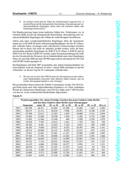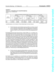 Deutscher Bundestag – 18. Wahlperiode –9– Drucksache 18/6215 Vorabfassung - wird durch die lektorierte Version ersetzt. Zu Frage 14: Tabelle 14.2 : Leistungsbezug und Langzeitleistungsbezug Deutschland, West- und Ostdeutschland Zeitreihe Bestand erw erbsfähiger Leistungsberechtigter nach Langzeitleistungsbezug (15 Jahre und älter) Deutschland Westdeutschland Ostdeutschland Jahres- darunter darunter darunter durchschnitt eLb Langzeit- eLb Langzeit- eLb Langzeit- Anteil in % Anteil in % Anteil in % leistungsbezug leistungsbezug leistungsbezug 1 2 3 4 5 6 7 8 9 2013 4.423.731 3.122.955 70,6 3.006.413 2.057.224 68,4 1.417.318 1.065.732 75,2 2014 4.387.178 3.083.265 70,3 3.022.238 2.053.468 67,9 1.364.940 1.029.797 75,4 Quelle: B undesagentur für A rbeit Langzeitleistungsbezug = eLb mit mindestens 21 Monaten Hilfebedürftigkeit in den letzten 24 Monaten. 15. Welche Erkenntnisse hat die Bundesregierung darüber, in welchem Ausmaß in den ostdeutschen Bundesländern durch die langanhaltende Arbeitslosig- keit die ursprünglich vergleichsweise hohe Qualifikation von Erwerbslosen entwertet worden ist, und was bedeutet das für deren Beschäftigungsaussich- ten? Der Bundesregierung liegen derzeit keine exakten Zahlen vor, in welchem Aus- maß Qualifikationen durch Arbeitslosigkeit entwertet werden. Es gilt jedoch als unbestritten, dass mit zunehmender Dauer der Arbeitslosigkeit mit einer fort- schreitenden Entwertung bereits erlernter beruflicher Qualifikationen zu rechnen ist. Zudem kann davon ausgegangen werden, dass dies für einzelne Berufsgrup- pen erheblich variiert. In der Arbeitsförderung gelten Personen als berufsentfrem- det, wenn sie ihren Beruf aufgrund einer mehr als vier Jahre ausgeübten un- oder angelernten Tätigkeit voraussichtlich nicht mehr ausüben können. Dabei werden auch Zeiten der Erziehung, Pflege und Arbeitslosigkeit berücksichtigt. Durch ei- nen fortschreitenden Verlust beruflicher Qualifikation werden die Wiedereinglie- derungschancen der Betroffenen verschlechtert. Die Arbeitsmarktpolitik unter- stützt mit der Weiterbildungsförderung insbesondere beim Erwerb von am Aus- bildungs- und Arbeitsmarkt nachgefragten Qualifikationen und trägt damit maß- geblich zur Verbesserung von Beschäftigungschancen bei. 16. Wie hat sich in den ostdeutschen Bundesländern seit dem Jahr 1992 bis heute die Zahl der Weiterbildungsmaßnahmen in der Arbeitsförderung entwickelt (bitte jährliche Daten für alle Weiterbildungsmaßnahmen sowie die Weiter- bildungsmaßnahmen mit dem Ziel eines abgeschlossenen Berufsabschlusses nennen)? Der Tabelle 16 ist zu entnehmen, wie viele Eintritte von Teilnehmern in berufli- che Weiterbildung in Ostdeutschland jährlich seit 1992 erfolgt sind. Bezüglich der Werte in der Tabelle ist zu beachten, dass es im Vergleich zu Auswertungen mit anderen Datenständen zu Abweichungen kommen kann.