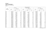 Zu Frage 7: Tabelle 7: Arbeitslosigkeit Deutschland, West- und Ostdeutschland Zeitreihe Bestand an Arbeitslosen Deutschland Westdeutschland Ostdeutschland Jahres- Veränderung Veränderung Veränderung durchschnitt absolut absolut absolut absolut in % absolut in % absolut in % 1 2 3 4 5 6 7 8 9 1992 2.978.570 x x 1.699.273 x x 1.279.297 x x 1993 3.419.141 440.571 14,8 2.149.465 450.192 26,5 1.269.676 -9.621 -0,8 1994 3.698.057 278.916 8,2 2.426.276 276.811 12,9 1.271.781 2.105 0,2 1995 3.611.921 -86.136 -2,3 2.427.083 807 0,0 1.184.838 -86.943 -6,8 1996 3.965.064 353.143 9,8 2.646.442 219.359 9,0 1.318.622 133.784 11,3 1997 4.384.456 419.392 10,6 2.870.021 223.579 8,4 1.514.435 195.813 14,8 1998 4.280.630 -103.826 -2,4 2.751.535 -118.486 -4,1 1.529.095 14.660 1,0 1999 4.100.499 -180.131 -4,2 2.604.720 -146.815 -5,3 1.495.779 -33.316 -2,2 2000 3.889.695 -210.804 -5,1 2.380.987 -223.733 -8,6 1.508.707 12.928 0,9 2001 3.852.564 -37.131 -1,0 2.320.500 -60.487 -2,5 1.532.064 23.357 1,5 2002 4.061.345 208.781 5,4 2.498.392 177.892 7,7 1.562.953 30.889 2,0 2003 4.376.795 315.450 7,8 2.753.181 254.789 10,2 1.623.614 60.661 3,9 2004 4.381.281 4.486 0,1 2.782.759 29.578 1,1 1.598.522 -25.092 -1,5 2005 4.860.909 479.628 10,9 3.246.755 463.996 16,7 1.614.154 15.632 1,0 2006 4.487.305 -373.604 -7,7 3.007.158 -239.597 -7,4 1.480.146 -134.008 -8,3 2007 3.760.586 -726.719 -16,2 2.475.528 -531.630 -17,7 1.285.058 -195.088 -13,2 2008 3.258.954 -501.632 -13,3 2.138.778 -336.750 -13,6 1.120.175 -164.883 -12,8 2009 3.414.992 156.038 4,8 2.314.215 175.437 8,2 1.100.777 -19.398 -1,7 2010 3.238.965 -176.027 -5,2 2.227.473 -86.742 -3,7 1.011.492 -89.285 -8,1 2011 2.976.488 -262.477 -8,1 2.026.545 -200.928 -9,0 949.943 -61.549 -6,1 2012 2.897.126 -79.362 -2,7 1.999.918 -26.627 -1,3 897.209 -52.734 -5,6 2013 2.950.338 53.212 1,8 2.080.342 80.424 4,0 869.995 -27.214 -3,0 2014 2.898.388 -51.950 -1,8 2.074.553 -5.789 -0,3 823.835 -46.160 -5,3 Quelle. Bundesagentur für Arbeit