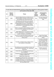Deutscher Bundestag – 19. Wahlperiode – 257 – Drucksache 19/2448 Vorabfassung - wird durch die lektorierte Version ersetzt. Von den Obersten Bundesbehörden und deren nachgeordneten Behörden in Auftrag gegebene Studien und Gutachten seit dem Jahr 2000 Veröf- Ressort / ggf. Begründung fent- Jahr Behörde Thema für Nicht- lichung (off. Abk.) veröffentlichung Ja/Nein Ingenieurmäßige Beratung und Betreuung zur noch nicht abgeschlos- 2015 BGR ingenieurmäßigen Beratung und Betreuung für Nein sen, Patentverfahren die Erstellung einer Präzisionsmesszelle läuft Erarbeitung eines Konzeptes zum systemati- schen Wissenstransfer von professionellen Er- fahrung/Fähigkeiten bzgl. der Themenfelder Ge- 2015 BGR Ja schäftsplanung und professioneller Manage- mentstrukturen in den Kleinbetrieben und Ko- operativen Studie zu menschenrechtlichen Risiken im Berg- 2015 BGR bau und der Rolle staatlicher Durchführungsor- Ja ganisationen“ Studie Mining Sector Assessments for Small 2015 BGR Business Opportunities in Vorbereitung des Pro- Ja gramms „Enterprise around Mining“ Review des technischen Berichts Radioecologi- Single Client Studie. 2015 BGR cal risk assessment of the Belanovo iron ore Nein Wismut ist Unterauftrag- mining project nehmer Vorstudie zur Identifika- tion und Priorisierung weiterer Arbeiten. Vor- Vorstudie zur Neubewertung wichtiger histori- 2015 BGR Nein studie enthielt keine Er- scher Erdbeben in Deutschland gebnisse zur Veröffentli- chung, nur Empfehlun- gen für Untersuchungen Erschließung geowissenschaftlicher Literatur mit Fachlich-organisatori- 2015 BGR Werkzeugen des Bibliotheks- bzw. Dokumenta- Nein sche Unterstützung tionswesens VNIR-SWIR und TIR Hyperspektralbefliegun- 2015 BGR Ja gen in Südafrika Charakterisierung der benthischen Biodiversität 2015 BGR Ja im Rahmen INDEX 2014 2015 BGR Studie Fazies Unterer Jura Ja Durchführung bathymetrischer Vermessungen des Meeresbodens sowie Auswertung und kar- 2015 BGR tenmäßige Darstellung sowie die Interpretation Ja der bathymetrischen Daten im Rahmen INDEX 2015 und INDEX 2016