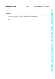 Drucksache 19/10481 – 84 – Deutscher Bundestag – 19. Wahlperiode Vorabfassung - wird durch die lektorierte Version ersetzt. Zu Frage 8 Wurde der Institution jemals die Unterstützung aufgrund unzureichender Verfolgung des Förderzwecks entzogen? Wenn ja, wie wurde der Entzug begründet? nein