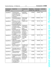 Drucksache 18/10868 – 54 – Deutscher Bundestag – 18. Wahlperiode Vorabfassung - wird durch die lektorierte Version ersetzt. Finanzierungs‐ Projekt‐Titel Private(r) Part‐ Öffentlicher Privater Bei‐ Land/Länder instrument ner Beitrag in EUR trag in EUR develoPPP.de Improvement of the Re‐ Siemens Electri‐ 162.740 254.812 China source efficiency in pro‐ cal Drives Ltd. duction networks of the SEDL Ltd., Tian‐ German enterprises jin throogh a sustainable Qualification and devel‐ opment of the Chinese supply chain (ResQ) develoPPP.de Umsetzung von Sozial‐ A Tschümperlin 176.363 233.829 China und Ökostandards in der AG chinesischen Naturstein‐ wirtschaft develoPPP.de Steigerung der Ressour‐ Adolf Würth 162.740 290.306 China ceneffizienz im Wert‐ GmbH & Co. KG schöpfungsnetzwerk deutscher Unternehmen durch eine nachhaltige Qualifizierung und Ent‐ wicklung der chinesi‐ schen Zuliefererkette (ResQ) develoPPP.de Increase of the Resource Deckel Maho 162.740 234.217 China efficiency in value added Gildemeister networks of German en‐ (Shanghai) Ma‐ terprises by sustainable chine Tools Co., Qualification and devel‐ Ltd. opment of the Chinese supply chain (ResQ) develoPPP.de Reduzierung der Um‐ KBA‐MetalPrint 154.841 471.563 China weltbelastung durch Ab‐ GmbH luftreinigung und Ener‐ gie‐Einsparung durch Wärme‐Rückgewinnung verbunden mit Einfüh‐ rung moderner neu ent‐ wickelter Technologien für die Lackier‐ und Druckanindustrie develoPPP.de Steigerung der Ressour‐ BSH Bosch‐Sie‐ 162.740 256.514 China ceneffizienz im Wert‐ mens Hausge‐ schöpfungsnetzwerk räte GmbH deutscher Unternehmen durch ein nachhaltige Qualifizierung und Ent‐ wicklung der chinesi‐ schen Zulieferkette (ResQ)
