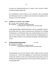 - 22 - bei denen ein Auslandszuschlag nach § 1 Absatz 1 Satz 1 Nummer 1 BAföG- AuslandszuschlagsV gewährt wird. Die Auszubildenden müssen künftig nur noch nachweisen, dass sie außerhalb des Elternhauses wohnen. Ein Nachweis über die Kosten der auswärtigen Unter- bringung ist nicht mehr erforderlich. 3.4.4 Wegfall des § 12 Absatz 2 Satz 2 BAföG § 12 Abs. 2 Satz 2, § 66a Abs. 2 BAföG Inkrafttreten: 1. jetzt für alle neu beginnenden BWZ 2. Rückwirkend ab 1. Oktober 2010 für alle anderen BWZ Förderungsberechtigten Schülerinnen/Schülern steht bei auswärtiger Unterbrin- gung künftig immer ohne weitere Voraussetzung der Bedarfssatz für auswärtige Unterbringung zu. Es bleibt jedoch dabei, dass Ausbildungsförderung für den Be- such der in § 2 Absatz 1 Nummer 1 BAföG bezeichneten Ausbildungsstätten ge- mäß § 2 Absatz 1a BAföG nur bei notwendiger auswärtiger Unterbringung geleis- tet wird. 3.5 Krankenversicherungszuschlag [A. Jordan] § 13a Abs. 1 Nr. 2 BAföG Inkrafttreten: 1. jetzt für alle neu beginnenden BWZ 2. rückwirkend ab 1. Oktober 2010 für alle anderen BWZ Die Bezugnahme auch auf § 257 Absatz 2b SGB V entfällt, da diese Vorschrift mit Wirkung zum 1. Januar 2009 weggefallen ist. Privatversicherte Auszubildende erhalten aber weiterhin nur dann einen Krankenversicherungszuschlag, wenn das Krankenversicherungsunternehmen die in § 257 Absatz 2a SGB V genannten Vo- raussetzungen erfüllt.