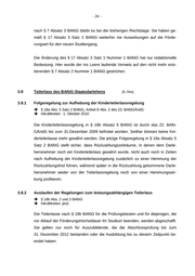 - 24 - nach § 7 Absatz 3 BAföG bleibt es bei der bisherigen Rechtslage. Sie haben ge- mäß § 17 Absatz 3 Satz 2 BAföG weiterhin nie Auswirkungen auf die Förde- rungsart für den neuen Studiengang. Die Änderung des § 17 Absatz 3 Satz 1 Nummer 1 BAföG hat nur redaktionelle Bedeutung. Hier wurde der ins Leere laufende Verweis auf den nicht mehr exis- tierenden § 7 Absatz 2 Nummer 1 BAföG gestrichen. 3.8 Teilerlass des BAföG-Staatsdarlehens 3.8.1 Folgeregelung zur Aufhebung der Kinderteilerlassregelung [S. Ritz] § 18a Abs. 5 Satz 2 BAföG, Artikel 8 Abs. 2 des 23. BAföGÄndG Inkrafttreten: 1. Oktober 2010 Die Kinderteilerlassregelung in § 18b Absatz 5 BAföG ist durch das 22. BAfö- GÄndG bis zum 31.Dezember 2009 befristet worden. Seither können keine Kin- derteilerlasse mehr gewährt werden. Die jetzige Folgeregelung in § 18a Absatz 5 Satz 2 BAföG stellt sicher, dass Rückzahlungszeiträume, in denen dem Darle- hensnehmer noch ein Kinderteilerlass gewährt wurde, nicht auch noch in Zeiten nach Aufhebung der Kinderteilerlassregelung zusätzlich zu einer Hemmung der Rückzahlungsfrist führen, während später in die Rückzahlung gekommene Darle- hensnehmer weder von der Teilerlassregelung noch von einer Hemmungswir- kung profitieren. 3.8.2 Auslaufen der Regelungen zum leistungsabhängigen Teilerlass § 18b Abs. 2 und 3 BAföG Inkrafttreten: jetzt Die Teilerlasse nach § 18b BAföG für die Prüfungsbesten und für diejenigen, die vor Ablauf der Förderungshöchstdauer ihr Studium beenden, werden abgeschafft. Sie gelten nur noch für Auszubildende, die die Abschlussprüfung bis zum 31. Dezember 2012 bestanden oder die Ausbildung bis zu diesem Zeitpunkt be- endet haben.
