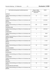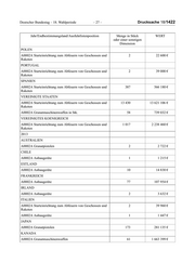 Deutscher Bundestag – 18. Wahlperiode – 25 – Drucksache 18/1422 Jahr/Endbestimmungsland/Ausfuhrlistenposition Menge in Stück WERT oder einer sonstigen Dimension MALAYSIA A0002A Starteinrichtung zum Abfeuern von Geschossen und 1 1 600 € Raketen NEUSEELAND A0002A Starteinrichtung zum Abfeuern von Geschossen und 16 349 440 € Raketen NORWEGEN A0002A Starteinrichtung zum Abfeuern von Geschossen und 71 63 946 € Raketen POLEN A0002A Starteinrichtung zum Abfeuern von Geschossen und 172 725 470 € Raketen SCHWEDEN A0002A Starteinrichtung zum Abfeuern von Geschossen und 1 19 980 € Raketen SCHWEIZ A0002A Starteinrichtung zum Abfeuern von Geschossen und 1 31 580 € Raketen SINGAPUR A0002A Starteinrichtung zum Abfeuern von Geschossen und 23 34 270 € Raketen UNGARN A0002A Starteinrichtung zum Abfeuern von Geschossen und 30 44 130 € Raketen VEREINIGTE ARABISCHE EMIRATE A0002A Starteinrichtung zum Abfeuern von Geschossen und 1 1 435 € Raketen VEREINIGTE STAATEN A0002A Starteinrichtung zum Abfeuern von Geschossen und 7088 6 863 373 € Raketen VEREINIGTES KOENIGREICH A0002A Starteinrichtung zum Abfeuern von Geschossen und 755 2 298 171 € Raketen PHILIPPINEN A0002A Starteinrichtung zum Abfeuern von Geschossen und 25 37 500 € Raketen
