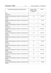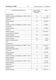 Drucksache 18/1422 – 30 – Deutscher Bundestag – 18. Wahlperiode Jahr/Endbestimmungsland/ALPos. Menge in Stück WERT oder einer sonstigen Dimension NIEDERLANDE A0004B Ausrüstung zur Handhabung von A0004 A – Waren 21 0€ A0004A Flugkörper 13 13 227 890 € PAKISTAN A0004A Flugkörper 100 8 010 400 € POLEN A0004B Ausrüstung zur Handhabung von A0004 A – Waren 19 1 100 000 € RUMÄNIEN A0004A Flugkörper 102 9 180 000 € SPANIEN A0004A Flugkörper 10 10 350 000 € TSCHECHISCHE REPUBLIK A0004A Flugkörper 26 2 379 000 € VEREINIGTES KOENIGREICH A0004A Flugkörper 240 8 388 € A0002A Panzerabwehrwaffen 4 16 000 € 2010 FRANKREICH A0004B Ausrüstung zur Handhabung von A0004 A – Waren 153 17 091 184 € A0004A Flugkörper 50 2 935 € A0002A Rückstoßfreie Waffen 5 10 000 € LETTLAND A0004A Flugkörper 27 2 322 000 € LUXEMBURG A0004B Ausrüstung zur Handhabung von A0004 A – Waren 2 42 980 € A0004A Flugkörper 4 360 000 € NIEDERLANDE A0004B Ausrüstung zur Handhabung von A0004 A – Waren 2 379 970 € A0004A Flugkörper 2 2 035 060 € NORWEGEN A0004A Flugkörper 6 437 376 € PAKISTAN A0004A Flugkörper 484 38 526 461 €