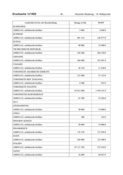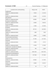Drucksache 18/1422 – 42 – Deutscher Bundestag – 18. Wahlperiode Land/Jahr/ALPos mit Beschreibung Menge in Stk. WERT NORWEGEN A0003A 01, militärische Kaliber 70 850 10 119 € OMAN A0003A 01, militärische Kaliber 126 600 41 674 € PHILIPPINEN A0003A 01, militärische Kaliber 100 000 145 000 € RUSSISCHE FÖDERATION A0003A 01, militärische Kaliber 88 900 70 667 € SAUDI-ARABIEN A0003A 01, militärische Kaliber 35 900 44 749 € SCHWEIZ A0003A 01, militärische Kaliber 887 410 164 520 € SINGAPUR A0003A 01, militärische Kaliber 1 000 294 € SUDAN A0003A 01, militärische Kaliber 40 000 15 800 € TSCHECHISCHE REPUBLIK A0003A 01, militärische Kaliber 515 500 417 385 € UKRAINE A0003A 01, militärische Kaliber 14 800 2 551 € UNGARN A0003A 01, militärische Kaliber 45 500 13 550 € VEREINIGTE ARABISCHE EMIRATE A0003A 01, militärische Kaliber 500 7 500 € VEREINIGTE STAATEN A0003A 01, militärische Kaliber 30 681 280 5 564 150 € VEREINIGTES KOENIGREICH A0003A 01, militärische Kaliber 1 077 600 577 396 € 2011 AFGHANISTAN A0003A 01, militärische Kaliber 190 000 111 250 € ÄGYPTEN A0003A 01, militärische Kaliber 20 000 25 647 € ANDORRA A0003A 01, militärische Kaliber 60 0€