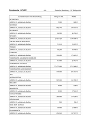 Drucksache 18/1422 – 44 – Deutscher Bundestag – 18. Wahlperiode Land/Jahr/ALPos mit Beschreibung Menge in Stk. WERT SCHWEDEN A0003A 01, militärische Kaliber 2 000 1 600 € SCHWEIZ A0003A 01, militärische Kaliber 802 740 160 677 € SLOWAKEI A0003A 01, militärische Kaliber 84 000 46 284 € SPANIEN A0003A 01, militärische Kaliber 2 851 720 1 140 688 € TSCHECHISCHE REPUBLIK A0003A 01, militärische Kaliber 21 010 34 832 € TÜRKEI A0003A 01, militärische Kaliber 60 200 60 400 € UKRAINE A0003A 01, militärische Kaliber 108 600 174 483 € VEREINIGTE ARABISCHE EMIRATE A0003A 01, militärische Kaliber 81 000 26 913 € VEREINIGTE STAATEN A0003A 01, militärische Kaliber 27 872 000 3 213 600 € VEREINIGTES KOENIGREICH A0003A 01, militärische Kaliber 778 000 576 467 € 2012 AFGHANISTAN A0003A 01, militärische Kaliber 305 000 161 500 € BELGIEN A0003A 01, militärische Kaliber 4 600 1 380 € BRASILIEN A0003A 01, militärische Kaliber 8 000 17 484 € COTE D’IVOIRE A0003A 01, militärische Kaliber 360 000 179 200 € DÄNEMARK A0003A 01, militärische Kaliber 200 506 € DEM. REP. KONGO A0003A 01, militärische Kaliber 50 000 23 000 € FRANKREICH A0003A 01, militärische Kaliber 434 040 147 017 €