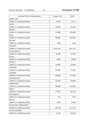 Deutscher Bundestag – 18. Wahlperiode – 45 – Drucksache 18/1422 Land/Jahr/ALPos mit Beschreibung Menge in Stk. WERT GRÖNLAND A0003A 01, militärische Kaliber 10 000 6 411 € HAITI A0003A 01, militärische Kaliber 180 000 68 400 € INDIEN A0003A 01, militärische Kaliber 170 000 476 000 € IRAK A0003A 01, militärische Kaliber 500 000 190 000 € ISLAND A0003A 01, militärische Kaliber 1 000 256 € KANADA A0003A 01, militärische Kaliber 10 591 360 830 133 € KASACHSTAN A0003A 01, militärische Kaliber 68 000 38 200 € KENIA A0003A 01, militärische Kaliber 10 000 3 800 € KUWAIT A0003A 01, militärische Kaliber 100 000 24 800 € LIBANON A0003A 01, militärische Kaliber 220 000 87 402 € NAMIBIA A0003A 01, militärische Kaliber 600 000 87 500 € NEUSEELAND A0003A 01, militärische Kaliber 156 500 29 000 € NORWEGEN A0003A 01, militärische Kaliber 300 000 142 800 € OMAN A0003A 01, militärische Kaliber 127 820 40 232 € ÖSTERREICH A0003A 01, militärische Kaliber 930 879 € POLEN A0003A 01, militärische Kaliber 2 400 2 366 € RUSSISCHE FÖDERATION A0003A 01, militärische Kaliber 459 100 325 124 € SAUDI-ARABIEN A0003A 01, militärische Kaliber 32 700 44 085 €