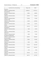 Drucksache 18/1422 – 46 – Deutscher Bundestag – 18. Wahlperiode Land/Jahr/ALPos mit Beschreibung Menge in Stk. WERT SCHWEDEN A0003A 01, militärische Kaliber 3 080 4 840 € SCHWEIZ A0003A 01, militärische Kaliber 401 514 148 977 € SUDAN A0003A 01, militärische Kaliber 40 000 18 400 € TSCHECHISCHE REPUBLIK A0003A 01, militärische Kaliber 169 200 204 230 € UKRAINE A0003A 01, militärische Kaliber 584 600 533 481 € UNGARN A0003A 01, militärische Kaliber 36 510 11 630 € VEREINIGTE ARABISCHE EMIRATE A0003A 01, militärische Kaliber 151 000 37 123 € VEREINIGTE REP. TANSANIA A0003A 01, militärische Kaliber 4 500 955 € VEREINIGTE STAATEN A0003A 01, militärische Kaliber 45 012 480 1 970 181 € VEREINIGTES KOENIGREICH A0003A 01, militärische Kaliber 43 200 22 420 € 2013 AFGHANISTAN A0003A 01, militärische Kaliber 50 000 19 000 € CHILE A0003A 01, militärische Kaliber 300 165 € DEM.REP. KONGO A0003A 01, militärische Kaliber 50 000 19 000 € FRANKREICH A0003A 01, militärische Kaliber 176 570 172 958 € HAITI A0003A 01, militärische Kaliber 330 000 125 400 € ITALIEN A0003A 01, militärische Kaliber 87 111 549 572 610 € JAPAN A0003A 01, militärische Kaliber 16 000 68 923 €