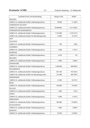 Drucksache 18/1422 – 50 – Deutscher Bundestag – 18. Wahlperiode Land/Jahr/ALPos mit Beschreibung Menge in Stk. WERT SPANIEN A0003A 01, militärische Kaliber Vollmantelgeschosse 30 000 11 100 € VEREINIGTE STAATEN A0003A 01, militärische Kaliber Vollmantelgeschosse 76 000 000 6 571 088 € VEREINIGTES KOENIGREICH A0003A 01, militärische Kaliber Vollmantelgeschosse 7 272 000 3 239 357 € A0003A 06, militärische Kaliber für Maschinengewehre 32 000 18 274 € 2010 ÄGYPTEN A0003A 01, militärische Kaliber Vollmantelgeschosse 780 100 € ANDORRA A0003A 01, militärische Kaliber Vollmantelgeschosse 5 400 1 591 € BAHRAIN A0003A 01, militärische Kaliber Vollmantelgeschosse 4 470 0€ BELGIEN A0003A 01, militärische Kaliber Vollmantelgeschosse 2 000 1 000 € DÄNEMARK A0003A 01, militärische Kaliber Vollmantelgeschosse 1 406 000 808 090 € FRANKREICH A0003A 01, militärische Kaliber Vollmantelgeschosse 887 340 974 456 € A0003A 06, militärische Kaliber für Maschinengewehre 315 000 408 780 € INDONESIEN A0003A 01, militärische Kaliber Vollmantelgeschosse 15 400 10 473 € IRAK A0003A 01, militärische Kaliber Vollmantelgeschosse 100 000 39 500 € ISLAND A0003A 01, militärische Kaliber Vollmantelgeschosse 1 000 334 € JAPAN A0003A 01, militärische Kaliber Vollmantelgeschosse 9 000 6 255 € JORDANIEN A0003A 01, militärische Kaliber Vollmantelgeschosse 500 000 92 800 € KASACHSTAN A0003A 01, militärische Kaliber Vollmantelgeschosse 2 800 3 000 € KOSOVO A0003A 01, militärische Kaliber Vollmantelgeschosse 30 300 14 880 €
