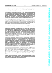 Drucksache 18/11210 –4– Deutscher Bundestag – 18. Wahlperiode Vorabfassung - wird durch die lektorierte Version ersetzt. 9. Welche Bundesprogramme zum Schutz und zur Aufklärung über die beson- dere Schutzbedürftigkeit von LSBTTI-Flüchtlingen gibt es? Spezialisierte Schutzprogramme des Bundes existieren nicht. Das Bundesminis- terium für Familie, Senioren, Frauen und Jugend (BMFSFJ) plant derzeit, die un- ter der Federführung des BMFSFJ und UNICEF entwickelten Mindeststandards zum Schutz von Kindern, Jugendlichen und Frauen in Flüchtlingsunterkünften (www.bmfsfj.de/blob/jump/109450/schutzkonzept-fluechtlinge-data.pdf) um ei- nen Annex speziell zur Gruppe geflüchteter LSBTTI zu ergänzen. Die Mindest- standards stellen eine Orientierungshilfe für die Schaffung entsprechender Struk- turen in Einrichtungen und Unterkünften dar. 10. Spielt das Thema LSBTTI im vorgesehenen Curriculum für Integrations- kurse eine Rolle (falls nein, bitte begründen)? Das Thema LSBTTI wird im Orientierungskurs in mehreren Modulen unter un- terschiedlichen Aspekten behandelt. Zudem wird das überarbeitete „Rahmencur- riculum für Integrationskurse – Deutsch als Zweitsprache“ auch im Sprachkur- steil die Behandlung des Themas LSBTTI in mehreren sprachlichen Handlungs- feldern vorsehen. 11. Gibt es nach Kenntnis der Bundesregierung durch das BAMF oder andere Behörden konkrete Bemühungen, LSBTTI die Möglichkeit zu bieten, die ei- gene Identität als Fluchtgrund und als Grund für eine besondere Schutzbe- dürftigkeit vertraulich geltend zu machen? Falls ja, zu welchem Zeitpunkt im Asylverfahren wird der Fluchtgrund LSBTTI erfasst (bitte aufschlüsseln), und zu welchem Zeitpunkt bietet sich für Geflüchtete die Möglichkeit, „ihre besondere Schutzbedürftigkeit“ als LSBTTI vertraulich geltend zu machen? Fluchtgründe werden statistisch nicht erfasst. Asylantragsteller haben die Mög- lichkeit, ihre individuellen Asylgründe, so auch Fluchtgründe im Zusammenhang mit der sexuellen Identität oder Orientierung, im Rahmen der persönlichen An- hörung beim Bundesamt für Migration und Flüchtlinge (BAMF) vorzutragen (§ 25 des Asylgesetzes [AsylG]). Die Anhörung ist grundsätzlich nicht öffentlich (§ 25 Absatz 6 AsylG), so dass die Vertraulichkeit von Angaben gewahrt bleibt. Auch die eingesetzten Dolmet- scher sind verpflichtet, die im Zusammenhang mit der Arbeit beim BAMF erhal- tenen Informationen vertraulich zu behandeln. Zudem wird bei Anhörungen im Zusammenhang mit der sexuellen Orientierung oder der Geschlechtsidentität ei- nes Antragstellers oder einer Antragstellerin den Wünschen nach dem Geschlecht der Dolmetscherin oder des Dolmetschers sowie der anhörenden Person nach Möglichkeit entsprochen. 12. Inwiefern werden Mitarbeiterinnen und Mitarbeiter des BAMF, insbeson- dere in der Funktion als Anhörer und Entscheider, bzgl. der besonderen Dis- kriminierung von LSBTTI sensibilisiert? In Fällen von geschlechtsspezifischer Verfolgung werden besonders geschulte Entscheiderinnen und Entscheidern eingesetzt. In speziellen Schulungsmaßnah- men werden diese auch im Umgang mit Personen, die Menschenrechtsverletzun- gen aufgrund ihrer sexuellen Orientierung oder Identität geltend machen, sensi- bilisiert. Daneben enthalten auch die als „VS-Nur für den Dienstgebrauch“ ein- gestuften internen Dienstanweisungen des BAMF umfangreiche Vorgaben zum