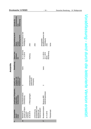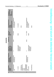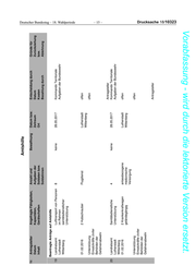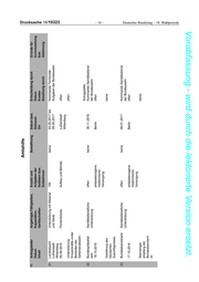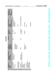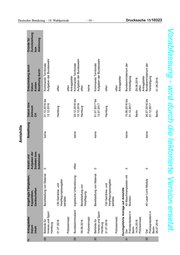 Amtshilfe Nr. Antragsteller Angefragte Fähigkeiten, Anzahl und Bewaffnung Datum bzw. Entscheidung durch Gründe für Datum Kapazitäten, Aufgaben der Zeitraum Datum Zurückziehung Inhalt Gerätschaften Soldaten bzw. Ort Kosten bzw. Soldatinnen Bezahlung durch Ablehnung 21 Landratsamt Unterstützung mit Material 150 keine 24.05.2017 bis Kommando Territoriale Lutherstadt und Gerät 29.05.2017 Aufgaben der Bundeswehr Wittenberg Drucksache 18/10323 05.09.2016 Pontonbrücke Aufbau und Betrieb Lutherstadt offen Wittenberg Unterstützung offen Einsatzkräfte ziviler Behörden der Gefahrenabwehr Antragsteller 22 Bundespräsidial- Sanitätsdienstliche offen keine 30.11.2016 Kommando Sanitätsdienst amt Unterstützung der Bundeswehr 18.10.2016 anlassbezogene Berlin offen medizinische Versorgung – 16 – Verleihung des keine Deutschen Zukunftspreises 23 Bundeskanzleramt Sanitätsdienstliche offen keine 09.01.2017 Kommando Sanitätsdienst Unterstützung der Bundeswehr 17.10.2016 anlassbezogene Berlin offen medizinische Versorgung Sternsinger- keine empfang der Bundeskanzlerin im Deutscher Bundestag – 18. Wahlperiode Vorabfassung - wird durch die lektorierte Version ersetzt.
