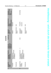 Amtshilfe Nr. Antragsteller Angefragte Fähigkeiten, Anzahl und Bewaffnung Datum bzw. Entscheidung durch Gründe für Datum Kapazitäten, Aufgaben der Zeitraum Datum Zurückziehung Inhalt Gerätschaften Soldaten bzw. Ort Kosten bzw. Soldatinnen Bezahlung durch Ablehnung Zurückgezogene Anträge auf Amtshilfe 61 Zollfahndungsamt Nutzungsüberlassung von 0 keine 13.09.2016 bis Antragsteller nicht benötigt Hamburg Liegenschaften 15.09.2016 Drucksache 18/10323 03.11.2015 Bereitstellung von Hamburg 06.07.2016 Unterkünften Unterstützung Clausewitz- keine Symposium der Kaserne Zollfahndungs- ämter 62 Auswärtiges Amt Sanitätsdienstliche 0 keine 04.08.2016 bis Antragsteller nicht benötigt Unterstützung 06.08.2016 08.04.2016 anlassbezogene Brasilien 01.08.2016 medizinische Versorgung – 32 – Unterstützung Rio de Janeiro keine protokollarischer Anlass Reise Bundespräsident 63 Auswärtiges Amt Sanitätsdienstliche 0 keine 18.09.2016 bis Antragsteller nicht benötigt Unterstützung 20.09.2016 21.07.2016 anlassbezogene Berlin und 11.08.2016 medizinische Hamburg Versorgung Unterstützung keine protokollarischer Anlass Staatsbesuch Indien 64 Polizeipräsidium Nutzungsüberlassung von 0 keine 20.09.2016 bis Antragsteller nicht benötigt Freiburg Liegenschaften 21.09.2016 Deutscher Bundestag – 18. Wahlperiode Vorabfassung - wird durch die lektorierte Version ersetzt.