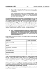 Drucksache 18/4887 –6– Deutscher Bundestag – 18. Wahlperiode 9. Wie ist der aktuelle Stand des Pilotverfahrens zur Verpackung von defek- ten Brennstäben in Köchern und deren Aufbewahrung in Castorbehältern im AKW Biblis? Welche restliche Laufzeit wird das Pilotverfahren nach aktueller Schät- zung noch haben, und welche Erkenntnisse hat es bislang schon gebracht (zum diesbezüglichen Stand von August 2014 siehe Bundestagsdrucksa- che 18/2427, Antwort zu Frage 11)? Im Änderungsgenehmigungsverfahren nach § 6 des Atomgesetzes (AtG) für das Standort-Zwischenlager Biblis „Köcher mit Sonderbrennstäben CASTOR® V/ 19“, das als Pilotverfahren betrieben wird, werden die bislang eingereichten An- tragsunterlagen nach wie vor geprüft. Die Antragsunterlagen liegen dem Bun- desamt für Strahlenschutz (BfS) noch nicht vollständig vor. Derzeit werden ins- besondere Untersuchungen zur Trocknung und zum Dichtschweißen eines Kö- chers durchgeführt. Belastbare Schätzungen über die Dauer des Pilotverfahrens können deshalb derzeit nicht abgegeben werden. Dem BfS ist nicht bekannt, wann die Antragssteller die bisher noch fehlenden Unterlagen einreichen. 10. Welche Zwischenlagergenehmigungsverfahren für bestrahlte Brennele- mente und Behälter- bzw. Behältertypzulassungsanträge inklusive Abwei- chungsanträge etc. sind derzeit beim Bundesamt für Strahlenschutz (BfS) anhängig (bitte differenzierte Darlegung wie in der Antwort zu Frage 8 auf Bundestagsdrucksache 18/2427)? Die Anzahl der Genehmigungsverfahren nach § 6 AtG je Bundesland ergibt sich aus folgender Tabelle: Bundesland Anzahl der Verfahren Baden-Württemberg 11 Bayern 10 Hessen 3 Mecklenburg-Vorpommern 1 Niedersachsen 12 Nordrhein-Westfalen 5 Schleswig-Holstein 7 Summe 49 Zu den aufgeführten 49 Genehmigungsverfahren nach § 6 AtG kommen noch folgende Anträge auf verkehrsrechtliche Zulassungen für Behälter, die in deutschen Zwischenlagern eingesetzt werden sollen, hinzu. Für den CASTOR® V/52 besteht ein Antrag auf Revision der Zulassung D/4373/B(U)F-96 (Rev. 1) zwecks Aufnahme einer Beladevariante mit SWR-Köchern für Sonderbrenn- stäbe. Für den CASTOR® V/19 liegen drei Anträge auf Revision der Zulassung D/4372/B(U)F-96 (Rev. 2) vor, welche die Aufnahme einer Beladevariante mit DWR-Köchern für Sonderbrennstäbe, die Erweiterung des zulässigen Inventars und die Verlängerung der Gültigkeitsdauer beinhalten. Im Folgenden sind die Verfahren nach § 6 AtG für jedes Bundesland nach Stand- ort und Thema aufgeführt.
