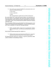 Deutscher Bundestag – 18. Wahlperiode –5– Drucksache 18/13266 Vorabfassung - wird durch die lektorierte Version ersetzt. 6. Wie viele Personen wurden bei Überfällen mit antisemitischer oder zu ver- mutender antisemitischer Motivation a) leicht verletzt, b) schwer verletzt bzw. c) getötet (bitte nach Bundesländern und Motivation der Straftat aufschlüsseln)? Im zweiten Quartal 2017 wurden drei Personen (Berlin: zwei und Sachsen-An- halt: eine) infolge von einer politisch rechts motivierten Straftat mit antisemiti- schem Hintergrund verletzt. Eine Person (Berlin) wurde infolge einer antisemiti- schen Straftat verletzt, die dem Phänomenbereich PMK-Ausländische Ideologie zugeordnet wurde. Eine weitergehende Differenzierung hinsichtlich des Verletzungsgrades ist den Angaben des kriminalpolizeilichen Meldedienstes „Politisch motivierte Krimina- lität“ nicht zu entnehmen. Es wurde kein Todesopfer gemeldet. 7. Welcher materielle Schaden entstand bei den antisemitischen Straftaten (bitte nach Schadenshöhe, Art der Motivation und Bundesländern aufschlüs- seln)? Hierzu liegen der Bundesregierung keine Angaben vor. 8. Welche gezielten bundesweiten Operationen der Polizei hat es wegen über- regionaler antisemitischer Straftaten mit welchem Ergebnis gegeben? Die Bundesregierung erteilt keine Auskünfte zu operativen polizeilichen Maß- nahmen im Rahmen von Ermittlungsverfahren.