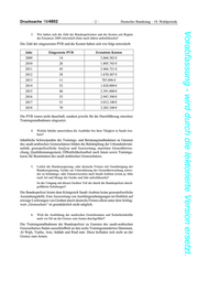 Drucksache 19/4802 –2– Deutscher Bundestag – 19. Wahlperiode Vorabfassung - wird durch die lektorierte Version ersetzt. 3. Wie haben sich die Zahl der Bundespolizisten und die Kosten seit Beginn des Einsatzes 2009 entwickelt (bitte nach Jahren aufschlüsseln)? Die Zahl der eingesetzten PVB und die Kosten haben sich wie folgt entwickelt: Jahr Eingesetzte PVB Erstattete Kosten 2009 14 2.068.382 € 2010 26 1.805.743 € 2011 45 2.466.721 € 2012 38 1.670.307 € 2013 11 707.896 € 2014 52 1.828.000 € 2015 46 2.391.000 € 2016 55 2.947.390 € 2017 51 3.012.140 € 2018 70 3.203.100 € Die PVB waren nicht dauerhaft, sondern jeweils für die Durchführung einzelner Trainingsmaßnahmen eingesetzt. 4. Welche Inhalte unterrichten die Ausbilder bei ihrer Tätigkeit in Saudi-Ara- bien? Inhaltliche Schwerpunkte der Trainings- und Beratungsmaßnahmen zu Gunsten des saudi-arabischen Grenzschutzes bilden die Bekämpfung der Urkundenkrimi- nalität, grenzpolizeiliche Analyse und Auswertung, maritime Grenzüberwa- chung, Qualitätsmanagement, Öffentlichkeitsarbeit nach Innen sowie Trainings- kurse für Beamtinnen des saudi-arabischen Grenzschutzes. 5. Liefert die Bundesregierung, oder deutsche Firmen mit Genehmigung der Bundesregierung, Geräte zur Unterstützung der Grenzüberwachung entwe- der zu Schulungs- oder Einsatzzwecken nach Saudi-Arabien (wenn ja, bitte nach Art und Menge der Geräte und Jahr aufschlüsseln)? Ist der Umgang mit diesen Geräten Teil der durch die Bundespolizei durch- geführten Schulungen? Die Bundespolizei leistet dem Königreich Saudi-Arabien keine grenzpolizeiliche Ausstattungshilfe. Eine Auswertung von Ausfuhrgenehmigungen im Hinblick auf etwaige Lieferungen von Geräten durch deutsche Firmen allein unter dem Schlag- wort „Grenzschutz“ ist grundsätzlich nicht möglich. 6. Wird die Ausbildung der saudischen Grenzbeamten und Sicherheitskräfte auch vor Ort an der Grenze zum Jemen durchgeführt? Die Trainingsmaßnahmen der Bundespolizei zu Gunsten des saudi-arabischen Grenzschutzes finden ausschließlich an den sechs Trainingsstandorten Dammam, Al Wajh, Yanbu, Arar, Jeddah und Riad statt. Diese befinden sich nicht an der Grenze zum Jemen.