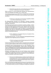 Drucksache 19/9813 –4– Deutscher Bundestag – 19. Wahlperiode Vorabfassung - wird durch die lektorierte Version ersetzt. In der EU Finanzmarktregulierung gibt es derzeit keine einheitliche Definition von Nachhaltigkeit. In der kommenden Verordnung über nachhaltigkeitsbezo- gene Offenlegung im Finanzsektor werden nachhaltige Investitionen definiert. 4. Wie bewertet die Bundesregierung die aktuellen Zwischenergebnisse der Technical Expert Group zum Thema Green Bond Standard (https://ec. europa.eu/info/sites/info/files/business_economy_euro/banking_and_finance/ documents/sustainable-finance-teg-subgroup-gbs-progress-report_en.pdf)? Die Bundesregierung stimmt derzeit zwischen den Ressorts ihre Stellungnahme zu den konkreten Vorschlägen zu den EU Green Bond Standards vom 6. März 2019 ab, welche in dem in der Frage in Bezug genommenen Zwischenbericht angekündigt werden. Nach vorläufiger Einschätzung des Bundesministeriums der Finanzen sind diese Vorschläge für einen EU Green Bond Standard zu begrüßen, auch wenn es zu Einzelbereichen noch Diskussionsbedarf gibt. Zu diskutieren ist vor allem, wie das Verhältnis zwischen einem künftigen EU Green Bond Standard und einer künftigen EU Taxonomie auszugestalten ist und ob die vorgeschlagenen Anreize zur Förderung von Green Bonds auch tatsächlich sachgerecht, wirkungsvoll und praktikabel sind. 5. Wie bewertet die Bundesregierung die Ergebnisse der Technical Expert Group zum Thema Offenlegungsvorschriften (https://ec.europa.eu/info/sites/ info/files/business_economy_euro/banking_and_finance/documents/190110- sustainable-finance-teg-report-climate-related-disclosures_en.pdf)? Die Empfehlungen der Technical Expert Group sind bereits in einen Vorschlag der EU-Kommission zur Ergänzung der unverbindlichen Leitlinien für die Be- richterstattung über nichtfinanzielle Informationen eingeflossen. Eine Bewertung dieses Vorschlags durch die Bundesregierung liegt derzeit noch nicht vor. 6. Welchen Zeitplan strebt die Bundesregierung bezüglich der Umsetzung der in den Fragen 1 bis 4 genannten Themen an? Der Zeitplan hängt von den konkreten Vorschlägen der Europäischen Kommis- sion ab und davon, wie viel Diskussionsbedarf sich ergibt. Bei der Taxonomie sehen wir noch grundsätzlichen Diskussionsbedarf. 7. Wie beurteilt die Bundesregierung die Tatsache, dass derzeit im Rahmen des Aktionsplanes anscheinend nur an der Umsetzung der ökologischen Aspekte der ESG-Kriterien gearbeitet wird (https://eur-lex.europa.eu/legal-content/ EN/TXT/PDF/?uri=CELEX:52018DC0097&from=EN)? a) Teilt die Bundesregierung die Auffassung der Fragesteller, dass eine ein- seitige Fokussierung auf die Umweltfragen zu Konflikten mit anderen ESG-Kriterien führen kann? b) Wenn ja, welche Zielkonflikte sieht die Bundesregierung, und wie will sie sie beseitigen? Die Fragen 7 bis 7b werden gemeinsam beantwortet. Die Bundesregierung ist sich bewusst, dass es Zielkonflikte hinsichtlich der Nachhaltigkeitsdimensionen gibt, und setzt sich dafür ein, dass nicht ausschließ- lich ökologische Aspekte eine Rolle spielen. Im Übrigen wird auf die Antwort zu Frage 6 der Kleinen Anfrage der Fraktion der FDP auf Bundestagsdrucksache 19/9411 verwiesen.