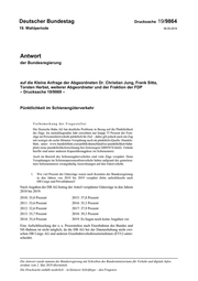 Deutscher Bundestag – 19. Wahlperiode –3– Drucksache 19/9864 9. Wie lang ist nach Kenntnis der Bundesregierung die Durchschnittslänge der Züge im Schienengüterverkehr? Nach Auskunft der DB AG sind Güterzüge durchschnittlich 499,1 Meter lang. 10. Wie hat sich nach Kenntnis der Bundesregierung die Anzahl der Tonnenki lometer zwischen 2010 und 2019 entwickelt? Die Beförderungsleistung hat sich zwischen 2010 und 2018 wie folgt entwickelt (Angaben in Mrd. tkm): 2010: 107,3 2015: 121,0 2011: 113,3 2016: 128,3 2012: 110,1 2017: 129,9 2013: 112,6 2018: 133,7 2014: 115,0 Die Werte für 2017 und 2018 sind vorläufig.
