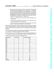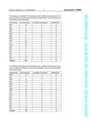 Deutscher Bundestag – 18. Wahlperiode –5– Drucksache 18/9991 Vorabfassung - wird durch die lektorierte Version ersetzt. Verteilung der ermittelten Tatverdächtigen und vorläufig festgenommenen Per- sonen im Bereich „Politisch motivierte Kriminalität-rechts“ mit Zuordnung zum Themenfeld „Hasskriminalität“: Bundesland Tatverdächtige vorläufige Festnahmen Haftbefehle BB 32 0 0 BE 3 0 0 BW 12 0 0 BY 21 1 0 HB 1 0 0 HE 0 0 0 HH 0 0 0 MV 22 0 0 NI 20 0 0 NW 18 2 0 RP 8 0 0 SH 0 0 0 SL 0 0 0 SN 8 0 0 ST 16 0 0 TH 0 0 0 Summe 161 3 0 Verteilung der ermittelten Tatverdächtigten und vorläufig festgenommenen Per- sonen im Bereich „Politisch motivierte Kriminalität-rechts mit fremdenfeindli- chem Hintergrund“: Bundesland Tatverdächtige vorläufige Festnahmen Haftbefehle BB 32 0 0 BE 2 0 0 BW 12 0 0 BY 18 1 0 HB 1 0 0 HE 0 0 0 HH 0 0 0 MV 22 0 0 NI 16 0 0 NW 17 1 0 RP 8 0 0 SH 0 0 0 SL 0 0 0 SN 7 0 0 ST 12 0 0 TH 0 0 0 Summe 147 2 0