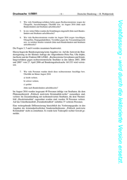 Drucksache 18/9991 –6– Deutscher Bundestag – 18. Wahlperiode Vorabfassung - wird durch die lektorierte Version ersetzt. 3. Wie viele Ermittlungsverfahren liefen gegen Rechtsextremisten wegen der Übergriffe, Ausschreitungen, Überfälle usw. im August 2016 (bitte nach Bundesländern und Straftaten aufschlüsseln)? 5. In wie vielen Fällen wurden die Ermittlungen eingestellt (bitte nach Bundes- ländern und Straftaten aufschlüsseln)? 6. Wie viele Rechtsextremisten wurden im August 2016 wegen Anschlägen, Übergriffen, Propagandadelikten, Verstößen gegen das Versammlungsrecht usw. zu welchen Strafen verurteilt (bitte nach Bundesländern und Straftaten aufschlüsseln)? Die Fragen 3, 5 und 6 werden zusammen beantwortet. Hierzu liegen der Bundesregierung keine Angaben vor. Auf die Antwort der Bun- desregierung zu der Kleinen Anfrage der Abgeordneten Petra Pau, Ulla Jelpke, Jan Korte und der Fraktion DIE LINKE. „Rechtsextreme Gewalttaten und Ermitt- lungsverfahren gegen rechtsextremistische Straftäter in den Jahren 2003, 2004 und 2005“ vom 27. April 2006 auf Bundestagsdrucksache 16/1353 wird verwie- sen. 7. Wie viele Personen wurden durch diese rechtsextremen Anschläge bzw. Überfälle im Monat August 2016 a) leicht verletzt, b) schwer verletzt, c) getötet (bitte nach Bundesländern aufschlüsseln)? Im August 2016 wurden insgesamt 49 Personen infolge von Straftaten, die dem Phänomenbereich „Politisch motivierte Kriminalität-rechts“ zuzuordnen sind, verletzt. Im Zusammenhang mit rechtsmotivierten Straftaten, die dem Themen- feld „Hasskriminalität“ zugeordnet worden sind, wurden 38 Personen verletzt. Auf das Unterthemenfeld „Fremdenfeindlich“ entfallen 37 verletzte Personen. Eine weitergehende Differenzierung hinsichtlich des Verletzungsgrades ist den Angaben des kriminalpolizeilichen Sondermeldedienstes „Politisch motivierte Kriminalität“ nicht zu entnehmen. Es wurde kein Todesopfer rechter Gewalt ge- meldet.