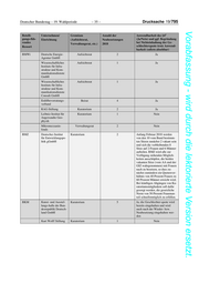 Drucksache 19/795 – 36 – Deutscher Bundestag – 19. Wahlperiode Vorabfassung - wird durch die lektorierte Version ersetzt. 3 Beteili- Unternehmen/ Gremium Anzahl der Anwendbarkeit des §4 gungs-füh- Einrichtung (Aufsichtsrat, Neubesetzungen (Ja/Nein) und ggf. Begründung rendes Verwaltungsrat, etc.) 2018 bei Nichteinhaltung der Ge- Ressort schlechterquote trotz Anwend- barkeit (sofern absehbar) NS-Dokumentati- Kuratorium 1 Nein ons-zentrum Mün- chen Stiftung Bach-Ar- Stiftungsrat 2 Nein chiv Leipzig Stiftung Bundesprä- Kuratorium 2 Nein sident-Theodor- Heuss-Haus 7. Welche der vom Bund besetzten wesentlichen Gremien werden im Jahr 2018 neu besetzt, und in welchem Umfang werden dabei jeweils die Vorgaben nach dem Bundesgremienbesetzungsgesetz berücksichtigt (bitte tabellari- sche Auflistung)? Die nachfolgende Liste enthält alle zum jetzigen Zeitpunkt absehbaren Neube- setzungen im Jahr 2018. Beteiligungsfüh- Name des Anzahl der Anwendbarkeit des § 5 (Ja/Nein) und ggf. Be- rendes Ressort wesentlichen Gremiums Neubesetzungen gründung bei Nichteinhaltung der Geschlechter- 2018 quote trotz Anwendbarkeit (sofern absehbar) BKAmt Keine Neubesetzungen in 2018 absehbar AA Kuratorium des Deutsch-Is- 3 Kandidaten/Kandidatinnen stehen noch nicht fest raelischen Zukunftsforums BMAS Kuratorium der Bundesan- 12 Sitze Ja stalt für Arbeitsschutz und Arbeitsmedizin Wissenschaftlicher Beirat 11 Sitze Ja der Bundesanstalt für Ar- beitsschutz und Arbeitsme- dizin Sozialbeirat nach § 156 12 derzeitiger Frauenanteil von 66,7 Prozent - Wieder- SGB VI berufung eines Mannes. Kommission nach § 3 des 1 Nein – nur 1 Mitglied Versorgungsruhensgesetzes BMBF Deutscher 1 Ja Ethikrat Deutsches 1 Nein Studentenwerk Expertenkommission For- 2 Ja schung und Innovation (EFI) Senat der 1 Ja Helmholtz-Gemeinschaft (HGF) Senat der Max-Planck-Ge- 1 Nein sellschaft e.V., Berlin (MPG) Villa Vigoni 1 Ja