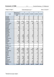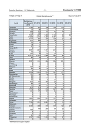 Anlage zu Frage 10 1) Stand: 21.02.2017 b2) Erteilte C-Visa lang 2016 nach Aufenthaltszweck und Aufenthaltsdauer - 20 wichtigste Herkunftsländer - C1 C2 Land Andere Gesamt (C1) Geschäft Familie Gesundheit Kultur Off. Besuch Sport Tourismus Studium China 277 44.087 8.340 1.840 6 21 11 10 1.286 4 Russische Föderation 406 52.019 5.814 5.670 290 452 18 63 4.633 18 Türkei 39 37.903 1.789 610 2 36 1 4 1.582 1 Indien 484 9.981 3.279 97 3 8 279 3 187 5 Ukraine 794 20.332 4.299 2.294 91 9 2 28 22 2 Saudi-Arabien 1 34.126 252 42 6 1 27 2 5.061 1 Kuwait 1 37.777 30 11 2 0 1 0 3.361 0 Deutscher Bundestag – 18. Wahlperiode Weißrussland 423 9.142 1.119 1.932 14 29 0 14 158 0 Thailand 23 4.491 755 202 23 7 14 3 319 3 VAE 213 3.759 494 89 2 0 0 0 164 1 Iran 100 5.916 1.156 1.195 15 40 2 3 11 0 Kasachstan 2 4.758 633 312 90 3 0 32 237 0 Ägypten 204 7.545 1.527 259 64 49 13 10 908 17 Kosovo 3 4.660 302 809 4 1 11 0 4 0 – 39 – Libanon 33 1.181 385 134 5 3 2 1 161 1 Südafrika 156 6.469 1.617 444 3 32 14 21 408 11 Großbritannien 45 2.242 106 140 0 4 0 0 86 0 Katar 2 2.425 15 13 1 1 1 0 1.453 0 Indonesien 237 3.312 133 83 6 0 2 1 35 0 Tunesien 53 2.619 743 133 37 7 5 3 62 0 Gesamt Top 20 3.496 294.744 32.788 16.309 664 703 403 198 20.138 64 1) Mehrfachnennungen möglich Drucksache 18/11588