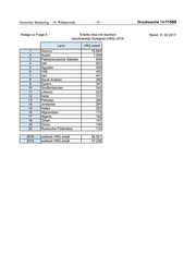 Anlage zu Frage 10 1 a) Erteilte Visa nach Aufenthaltszwecken 2016 Stand: 21.02.2017 Gesamt C-Visa kurz Flughafen- Andere Aufenthalts- 2016 transit zwecke Gesamt 306 50.754 1.455.739 Jahresvisum Gesamt C-Visa lang Flughafen- Andere Aufenthalts- 2016 transit Deutscher Bundestag – 18. Wahlperiode zwecke Gesamt 41 4.356 329.415 2-Jahresvisum Gesamt C-Visa lang Flughafen- Andere Aufenthalts- 2016 transit zwecke – 35 – Gesamt 13 1.410 90.855 3-Jahresvisum Gesamt C-Visa lang Flughafen- Andere Aufenthalts- 2016 transit zwecke Gesamt 7 703 70.697 4-Jahresvisum Gesamt C-Visa lang Flughafen- Andere Aufenthalts- 2016 transit zwecke Gesamt 1 139 15.107 5-Jahresvisum 1) Mehrfachnennungen möglich Drucksache 18/11588