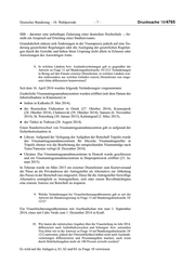 Drucksache 18/4765 –4– Deutscher Bundestag – 18. Wahlperiode wie hoch war im Jahr 2014 die Ablehnungsquote in Bezug auf Schengen- visa im EU-Durchschnitt? Es wird auf die Anlage zu Frage 2 verwiesen. Infolge einer Modifizierung der statistischen Auswertung werden seit dem Jahr 2014 Visumanträge, die von An- tragstellern zurückgezogen worden sind, gesondert ausgewiesen. Infolgedessen ist bei der statistischen Auswertung ein genauer Vergleichsmaßstab zum Vorjahr nicht herzustellen. Angaben zur durchschnittlichen Ablehnungsquote der anderen Schengenmit- gliedstaaten in Bezug auf Schengenvisa liegen der Bundesregierung nicht vor. 3. Wie viele Ausnahmevisa wurden im Jahr 2014 an den Grenzen von der Bundespolizei bzw. beauftragten Behörden der Länder erteilt (bitte zusätz- lich nach den zehn wichtigsten Herkunftsländern und den Gründen bzw. der Rechtsgrundlage differenziert darstellen)? Im Jahr 2014 wurden durch die Bundespolizei und die mit der grenzpolizei- lichen Kontrolle beauftragten Behörden der Länder Bayern und Hamburg 12 996 Ausnahmevisa erteilt. Die Erteilung erfolgte gemäß Artikel 35 und 36 des Visakodex (Schengen-Visum, Kategorie „C“) bzw. § 14 Absatz 2 des Auf- enthaltsgesetztes (nationales Visum, Kategorie „D“). Siehe ergänzend nachstehende Tabelle: Kategorie C Kategorie D Gesamt 12 953 Gesamt 43 Philippinen 5 599 Philippinen 14 Ukraine 2 359 Türkei 6 Indien 1 355 Russische Föderation 3 Russische Föderation 1 164 Ukraine 3 Indonesien 540 Syrien 2 China 403 Tunesien 2 Türkei 323 Ägypten 1 Myanmar 220 Algerien 1 Südafrika 83 Bosnien-Herzegowina 1 Nepal 63 Vietnam 1 sonstige 844 sonstige 9 4. Wie viele der im Jahr 2014 erteilten Schengenvisa waren Jahres-, Zweijah- res-, Dreijahresvisa, Fünfjahres- bzw. insgesamt Jahres- bzw. Mehrjahres- visa (bitte auch die Vergleichswerte des Vorjahres nennen und bitte zudem die Angaben nach Ländern differenziert darstellen, was auf Bundestags- drucksache 18/1212 versehentlich versäumt worden ist, da die Anlage fehlte)? Die deutschen Auslandsvertretungen erteilten im Jahr 2014 insgesamt 464 776 Visa mit ein- bzw. mehrjähriger Gültigkeitsdauer (2013: 413 190; Steigerungsrate: +12,75 Prozent). Darunter fielen 287 771 Jahresvisa (281 203; +2,34 Prozent), 80 560 Zweijahresvisa (58 162; +38,51 Prozent), 72 912 Dreijahresvisa (57 879;